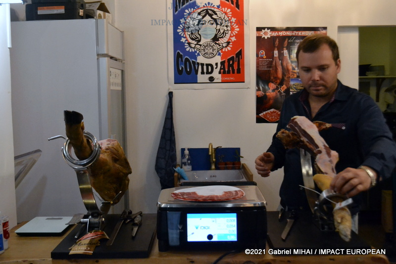 Dans le 13e arrondissement de Paris, Andrei Orza, a ouvert une boutique qui propose des produits d’origine espagnole: différents types de jambon espagnol, des fromages, ainsi que des produits pour faire la paella.