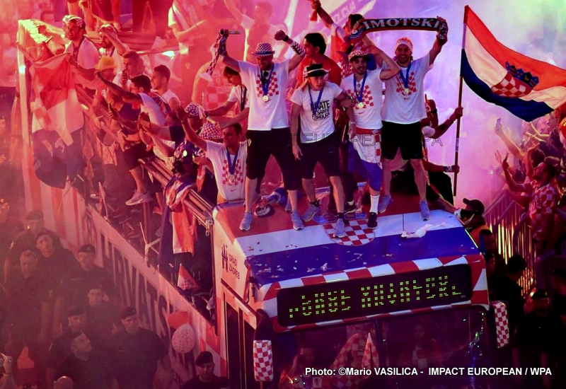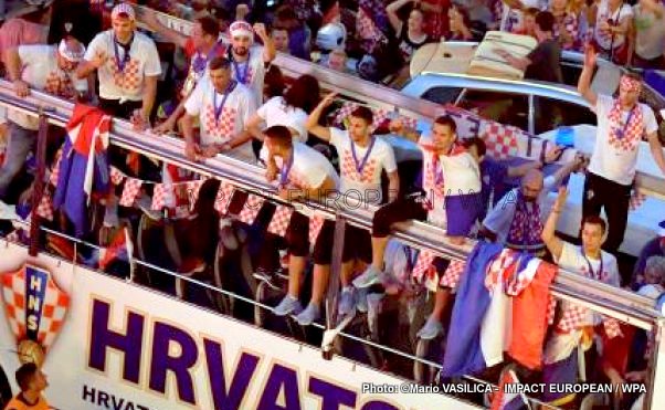 Le pays exulte quand le capitaine de la sélection apparaît en haut de la passerelle. « Luka… », crie l’animateur. « Modric ! », répond la place Jelacic. « Mario »… « Mandzukic ! », « Dejan »… « Lovren ! ». Près de quatre heures plus tard, le bus entre enfin en ville et n’est toujours pas arrivé à destination, se frayant difficilement un passage dans la foule.