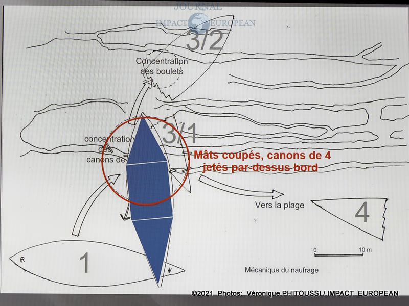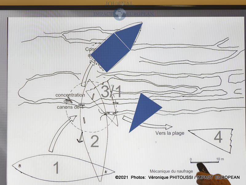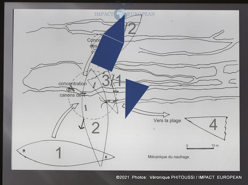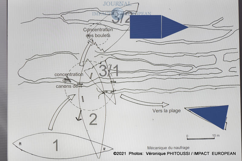 La plage descend jusqu’à 4000 m de profondeur, ce fut un souci de calculer le ressac, la mer creusait des rigoles, et les membres devaient attendre l’autre vague pour revenir sur la plage. Donc des conditions de fouilles sous-marines compliquées et dangereuses.