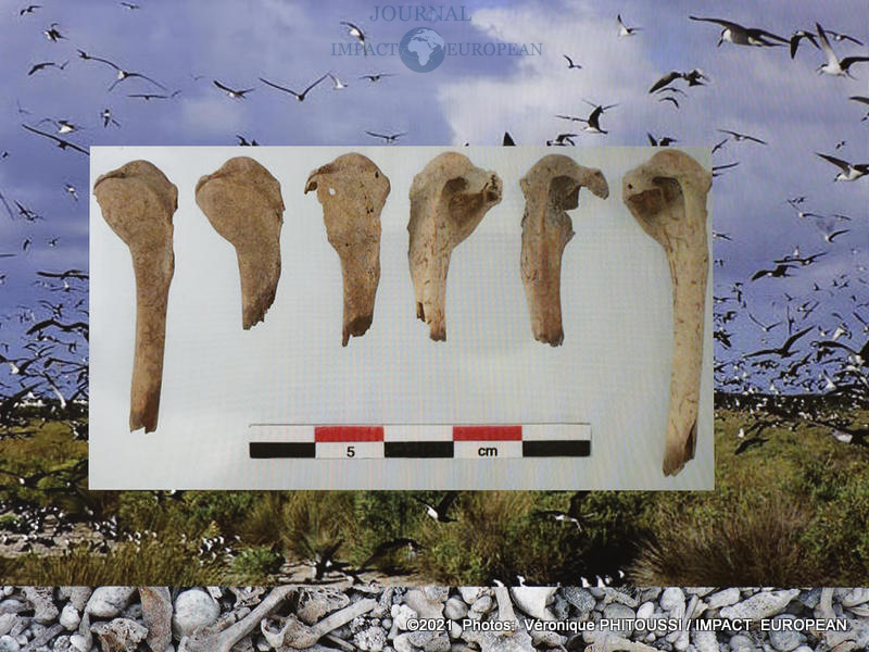 La photo 19 montre les différents os récupérés, de ce fait, les archéologues ont su ce que les naufragés mangeaient, des oiseaux grillés, ils enlevaient la chair grillée avec un objet tranchant (marques sur les os), par contre, les tortues vertes offraient plus de chair à manger.