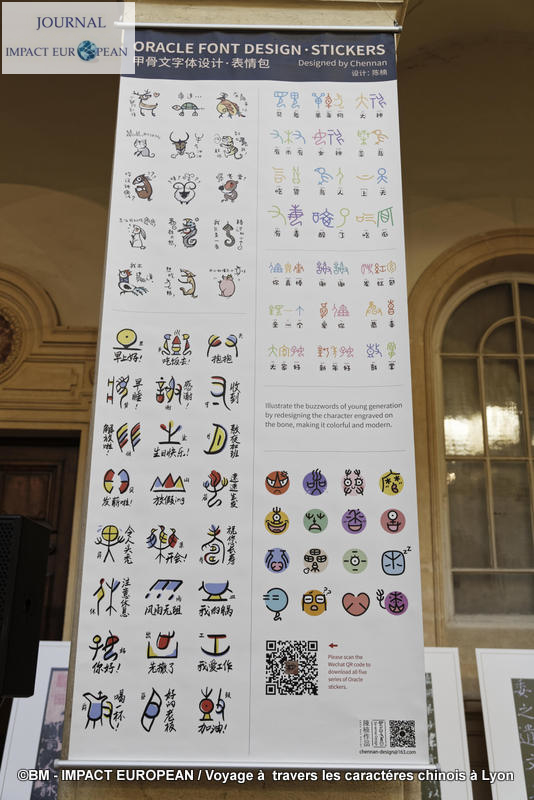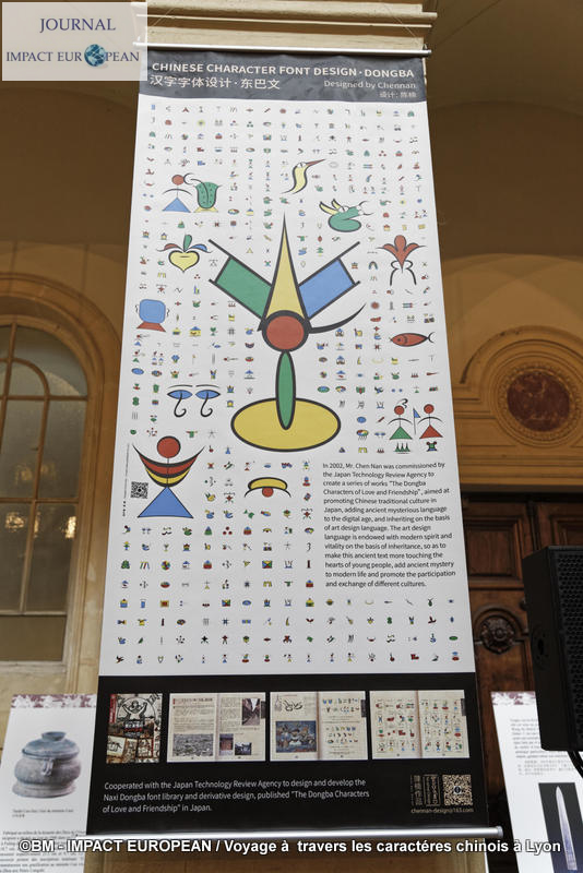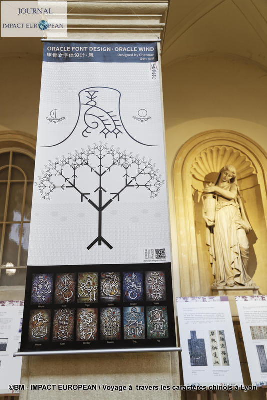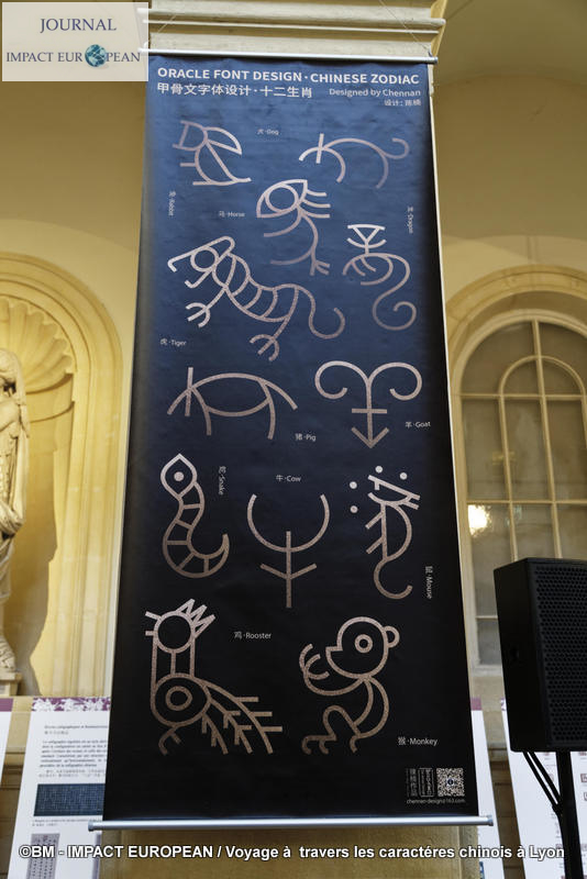 Création unique constituant une partie du patrimoine culturel de la Chine, l’écriture chinoise entre dans la culture mondiale bien que mystérieuse pour la plupart des autres civilisations. Grâce à cette exposition, l’évolution des caractères au cours des siècles est mise en avant tout en montrant son intégration dans le mode de vie actuel des différentes ethnies. C’est ainsi que l’on découvre ce que représentent les traits dans les caractères et apprenons quels sont les plus anciens hiéroglyphes, tels que “山” ,” 川”, “日” et “月. L’oracle est apparu il y a 4 000 ans, soit environ 2 000 ans après l’invention des cunéiformes de la Mésopotamie permettant l’évolution et la transmission millénaires de la civilisation chinoise.