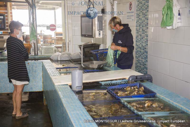 Les huîtres sont arrachées aux perlenettes où elles ont été placées pour un bain de jouvence dans une eau à 15 degrés, à leur arrivée des côtes atlantiques, alors qu’elles mesuraient à peine 2 centimètres . Pour qu’elles ne soient ni trop petites ni trop longues, elles ont préalablement été disposées de telle manière que la voisine bloque, passé un certain stade, la croissance de l’autre, et ainsi de suite; ceci jusqu’à ce qu’elles arrivent à maturité à l’âge de 2 ans.