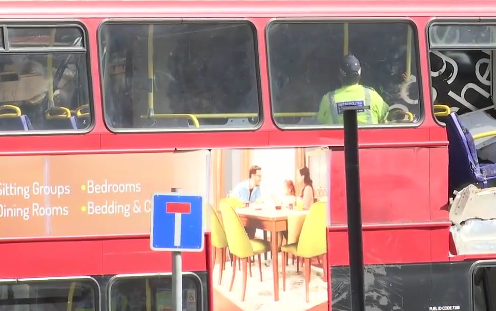 Un immense bus à impériale encastré dans la façade d’un magasin. Vers 6 heures du matin, à Battersea, un quartier du sud-ouest de Londres, un des fameux bus à étage de Londres a quitté la route pour finir sa course dans la boutique d’un cuisiniste. La vitrine a volé en éclat. La devanture est démolie.