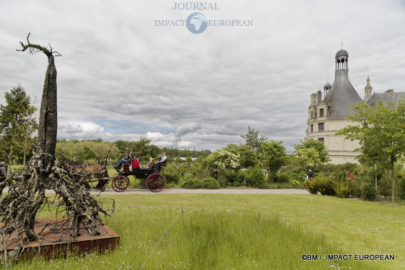 Les arborescences de l’exposition rencontrent le véritable arbre de vie qu’incarne l’escalier majestueux à double révolution de Léonard de Vinci avec sa structure rappelant celle de l’ADN, symbole majeur d’élan vital, ainsi que l’espace végétal qui entoure le monument.