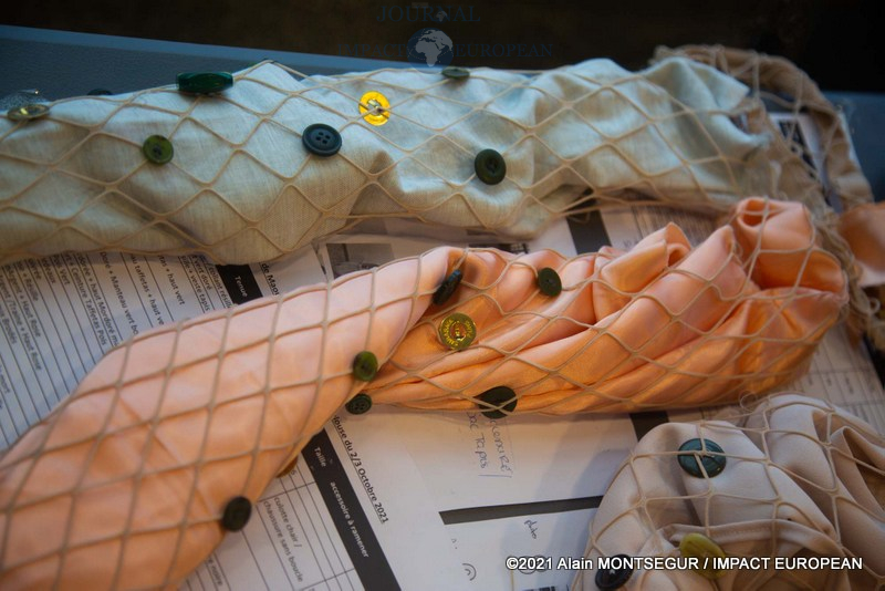 Le fil conducteur de ses « idées » se décline en variantes par rapport aux coupes, aux détails de recherche de volumes, aux couleurs, d’imprimés, de tissus et textures…Le travail de broderie, à la main, arrive ensuite. Chaque cliente possède un modèle unique doté d’un grand savoir-faire.