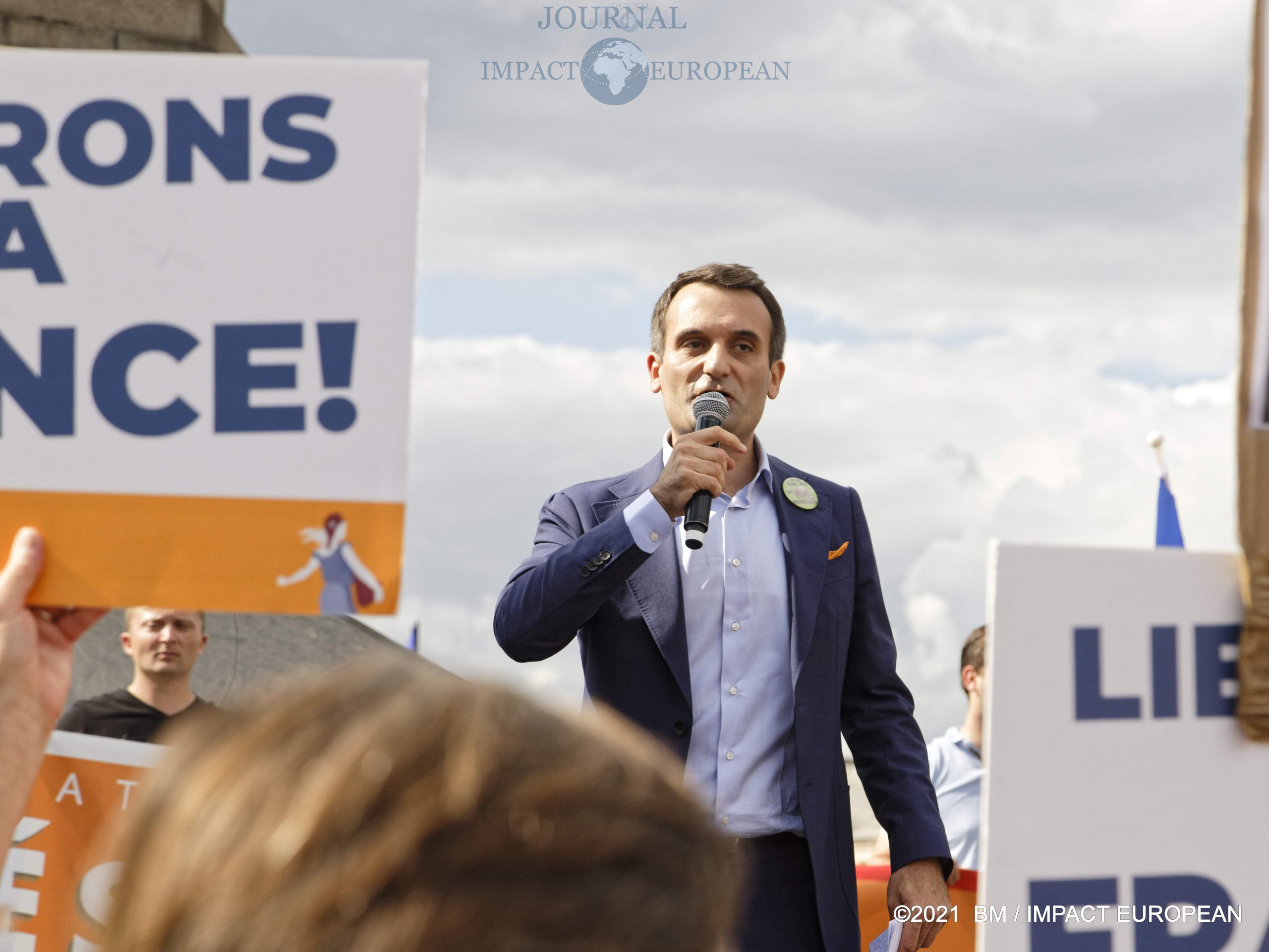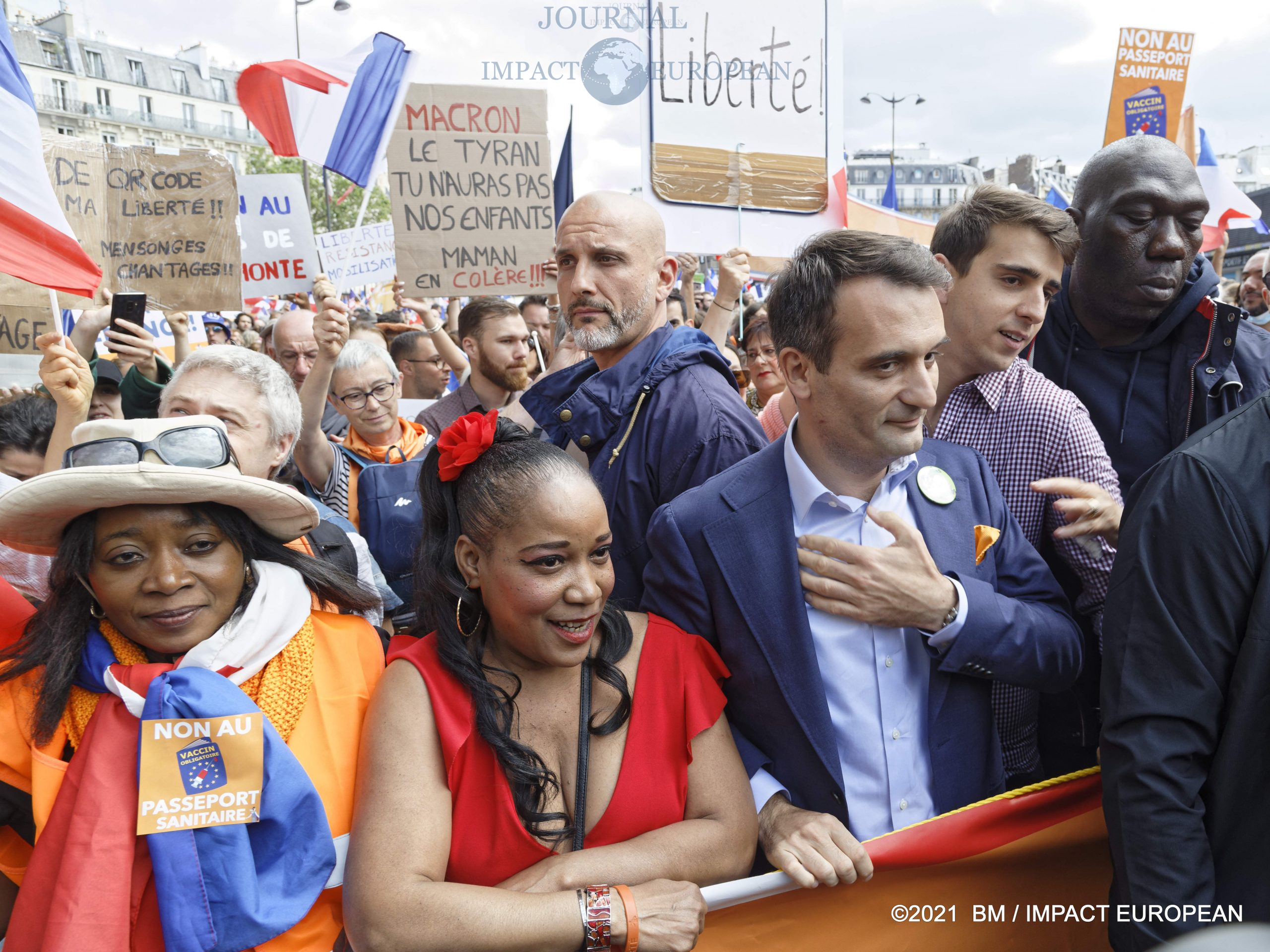 Du début à la fin, le président des « Patriotes » s »est tenu derrière une banderole sur laquelle on pouvait lire « Vaccinés ou pas, Tous unis ». Ses partisans ont entonné la Marseillaise. La fin de la marche a vu des prises de paroles dont celle de Florian Philippot. La manifestation s’est passée dans le calme malgré une prise à partie des journalistes de l’AFP au départ. Pourtant, ils avaient pu réaliser des interviews avant le départ. Suite aux insultes et aux actions les empêchant de filmer, l’AFP a décidé de suspendre sa couverture en images.