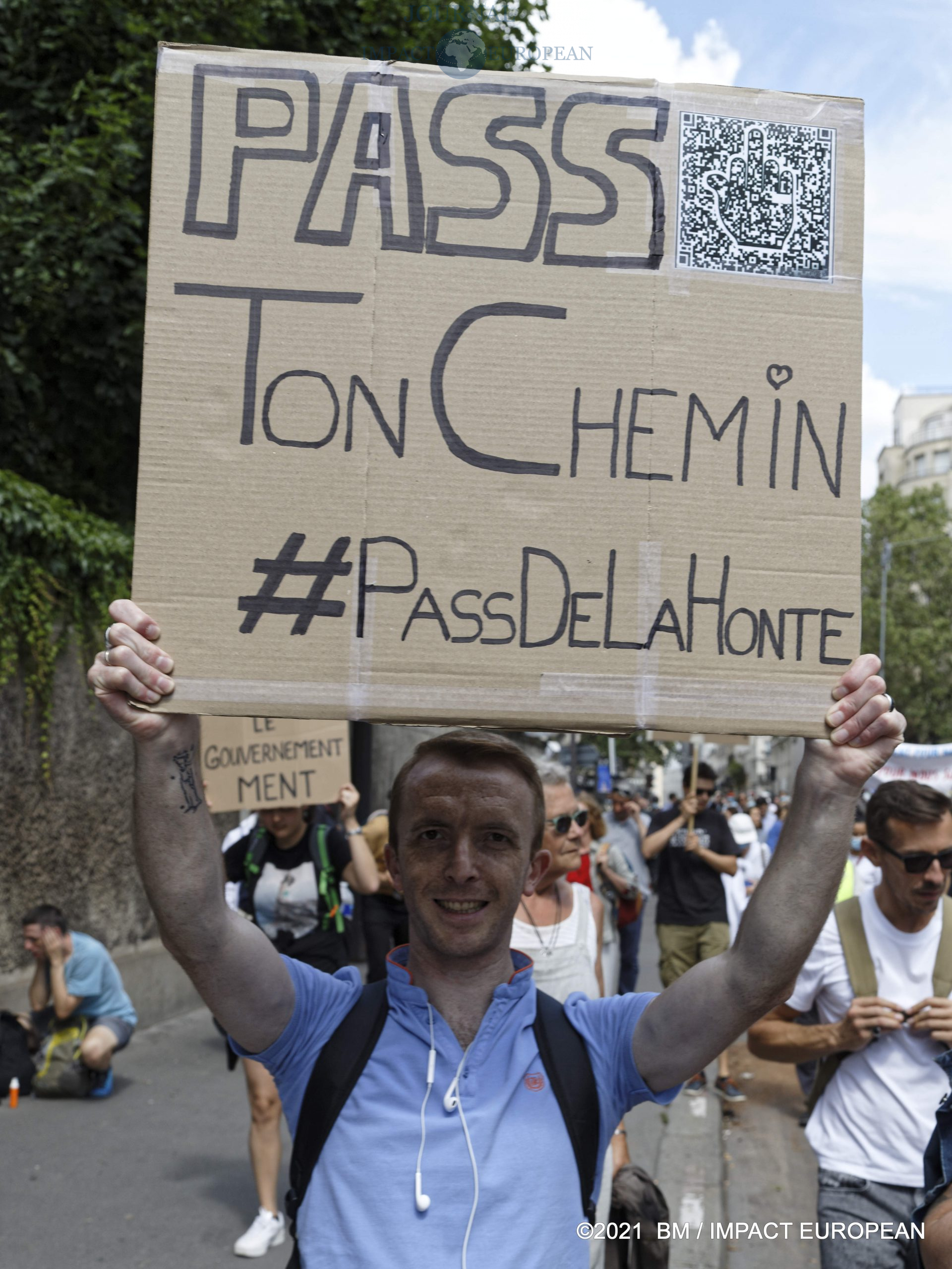 Des milliers de manifestants dans tout le pays pour protester contre l’adoption d’un pass sanitaire obligatoire pour accéder aux lieux fermés à partir du 6 août. Sur les pancartes on pouvait lire: