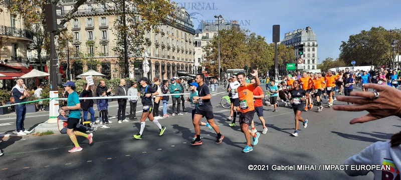 Partie des Champs-Élysées, l’épreuve longue de 42,195 km a conduit les coureurs vers l’est parisien par Opéra et la Bastille jusqu’au bois de Vincennes, avant le retour vers l’ouest par les quais de Seine jusqu’au bois de Boulogne et à l’arrivée porte Dauphine. Trente mois après sa dernière édition en avril 2019, avec deux reports et une annulation en 2020, puis une date fixée à l’automne plutôt qu’au printemps en 2021, l’épreuve parisienne a permis à des dizaines de milliers d’amateurs de retrouver le bitume parisien, sous réserve de présenter un passe sanitaire et de porter un masque dans la zone de départ.