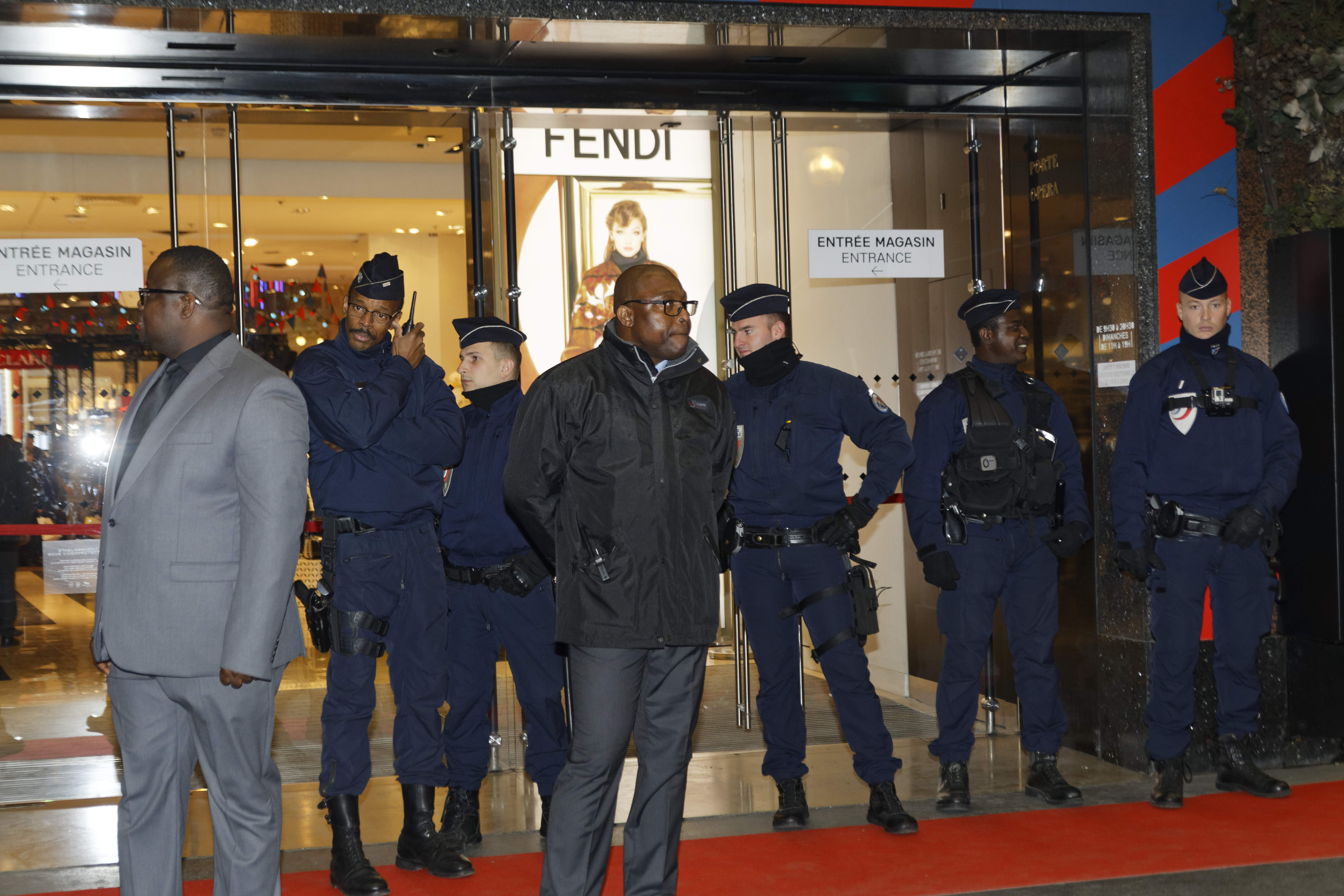 Marcel Campion s’invite à l’inauguration des vitrines de Noël aux Galeries Lafayette sous haute protection policière.