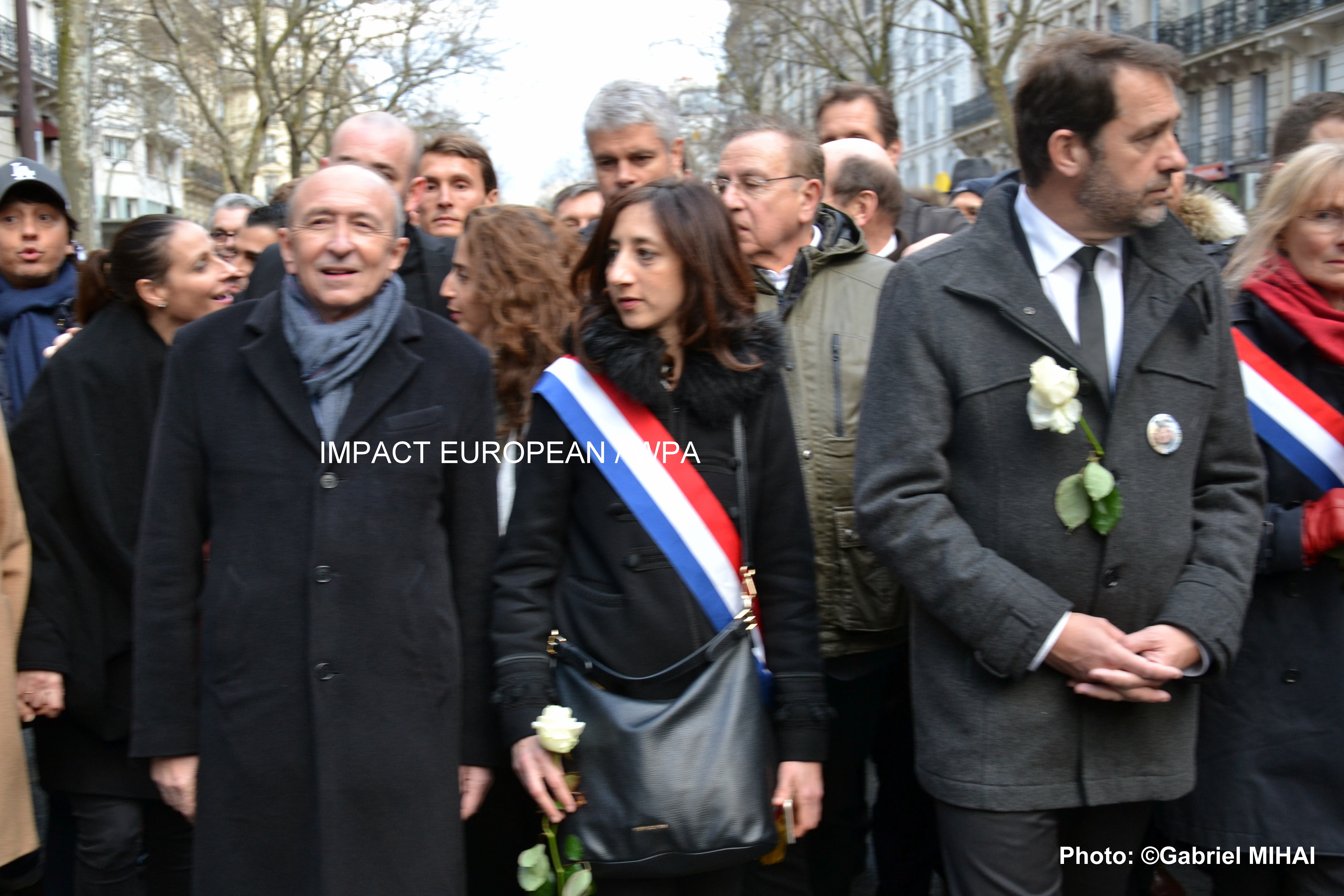 De nombreuses personnalités politiques ont réussi à se faire une place dans une ambiance beaucoup plus calme, mais Jean-Luc Mélenchon et Marine Le Pen, leader de la France insoumise et du Front national, ont été exfiltrés de la marche blanche.