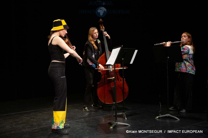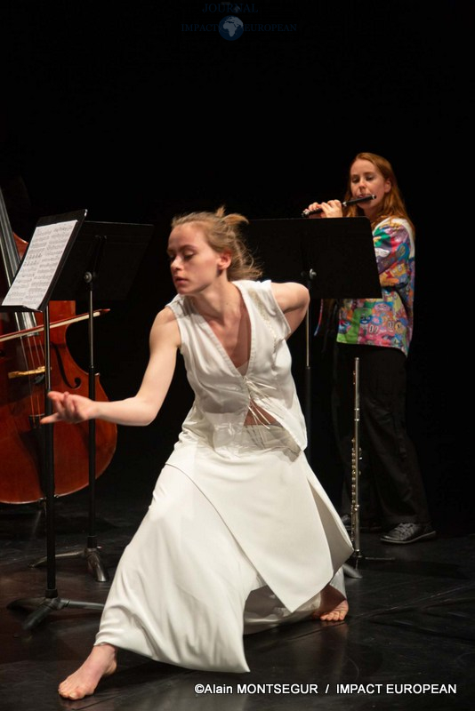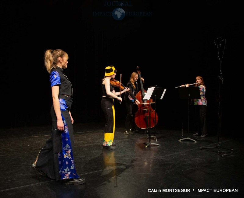 L’idée était de créer des tableaux dans lesquels mannequins et musiciens partageaient la scène. Les musiciens présents sur scène ont choisi des pièces musicales en lien avec les créations présentées. mettant en valeur les caractéristiques de chaque création et vice-versa. Il ne s’agissait pas d’un simple défilé pour exposer les créations. C’était une mise en scène avec des jeux de mise en espace, des interactions entre les mannequins présentant les différentes créations, avec la musique et les musiciens…Cette collaboration entre l’Ecole de Mode et la flutiste a permis de réunir Musiciens, Créateurs de Mode et Danseuse afin de présenter les créations sur scène.