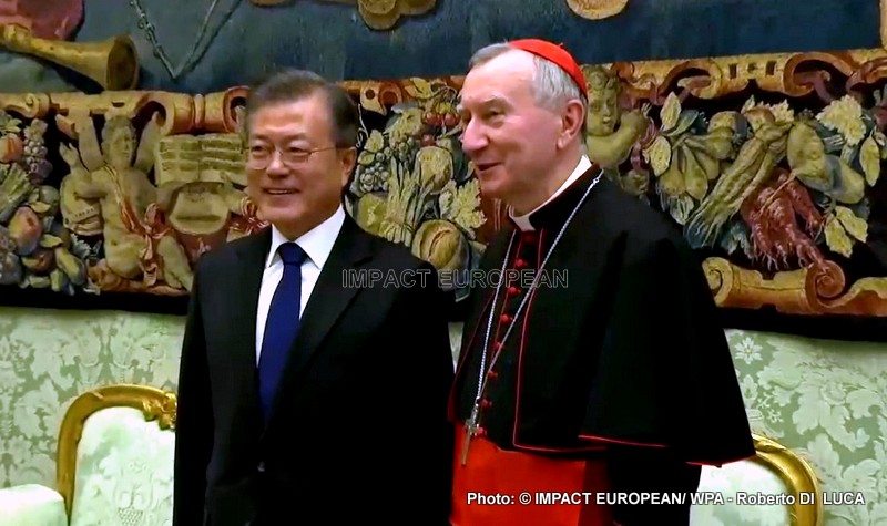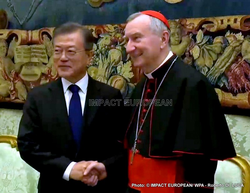 Moon Jae-in a rencontré le Pape, le cardinal Secrétaire d’État, Pietro Parolin, ainsi que le secrétaire des Relations avec les États, Mgr Paul Richard Gallagher, où l’entretien a été cordial. La contribution positive de l’Église dans les domaines du social, de l’éducation et de la santé, ainsi que dans la promotion du dialogue et de la réconciliation entre les deux Corée, a été soulignée par les deux parties.