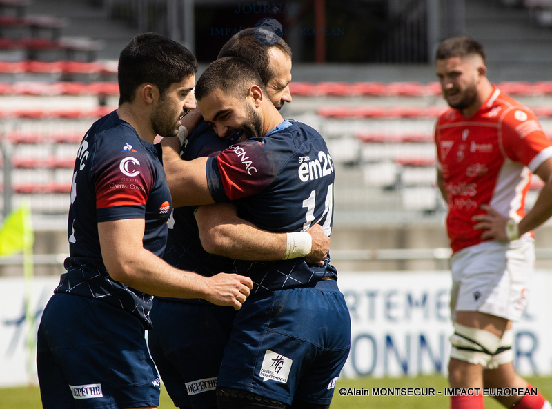 Pourtant, ils auraient dû au moins l’obtenir sans une décision de l’arbitre qui refusait un essai bel et bien marqué par Fusier à 5 minutes de la fin (75e) pour un placage à retardement du 2e ligne Touchkaïeff. Sauf que sur l’action, c’est l’ailier opposé de Chambéry, Thomas Hecquet, qui avait été gêné au préalable illicitement alors qu’il prenait de vitesse le dernier défenseur de Blagnac pour marquer en coin sur un coup de pied à suivre du demi d’ouverture remplaçant Belie.