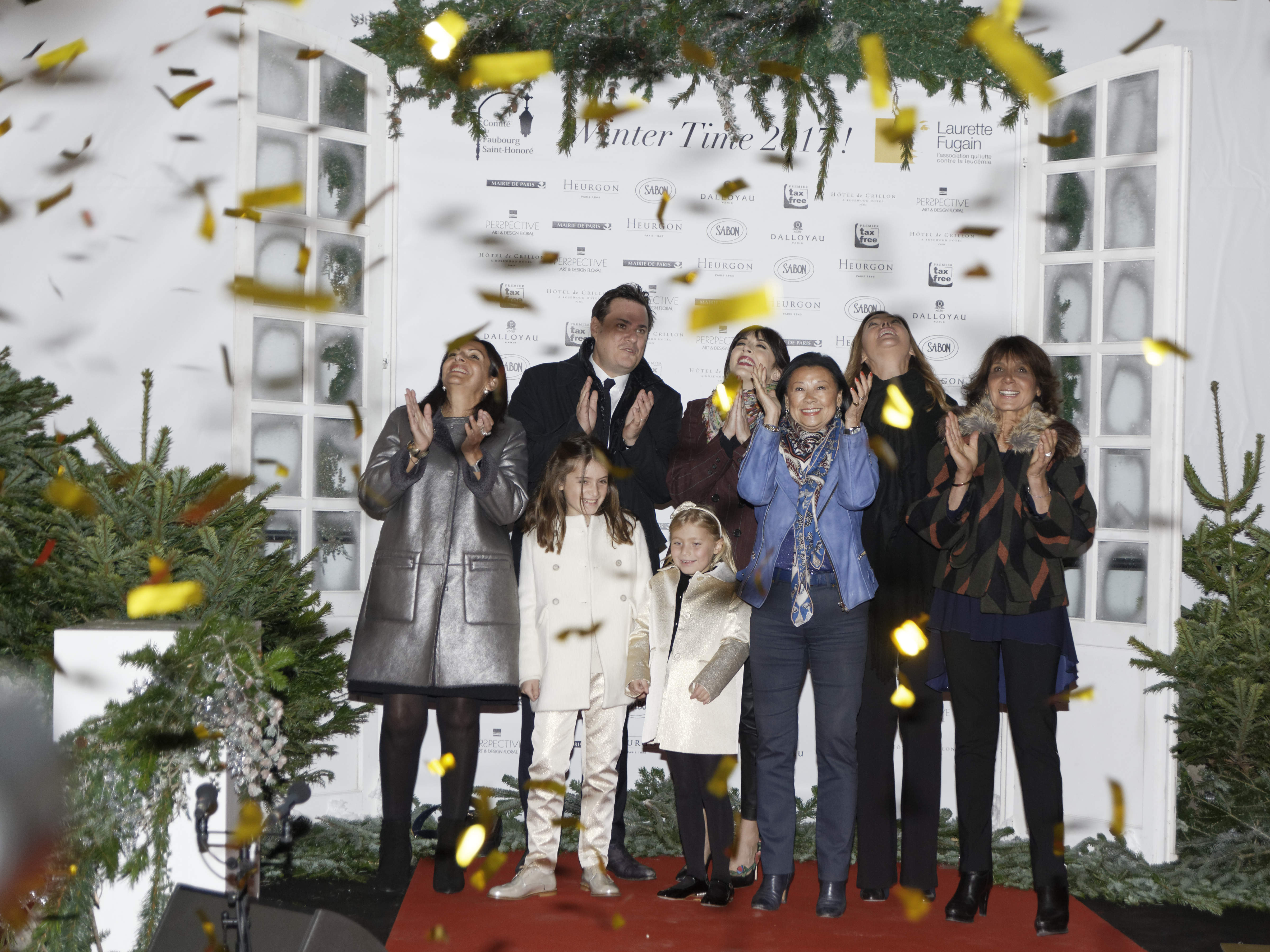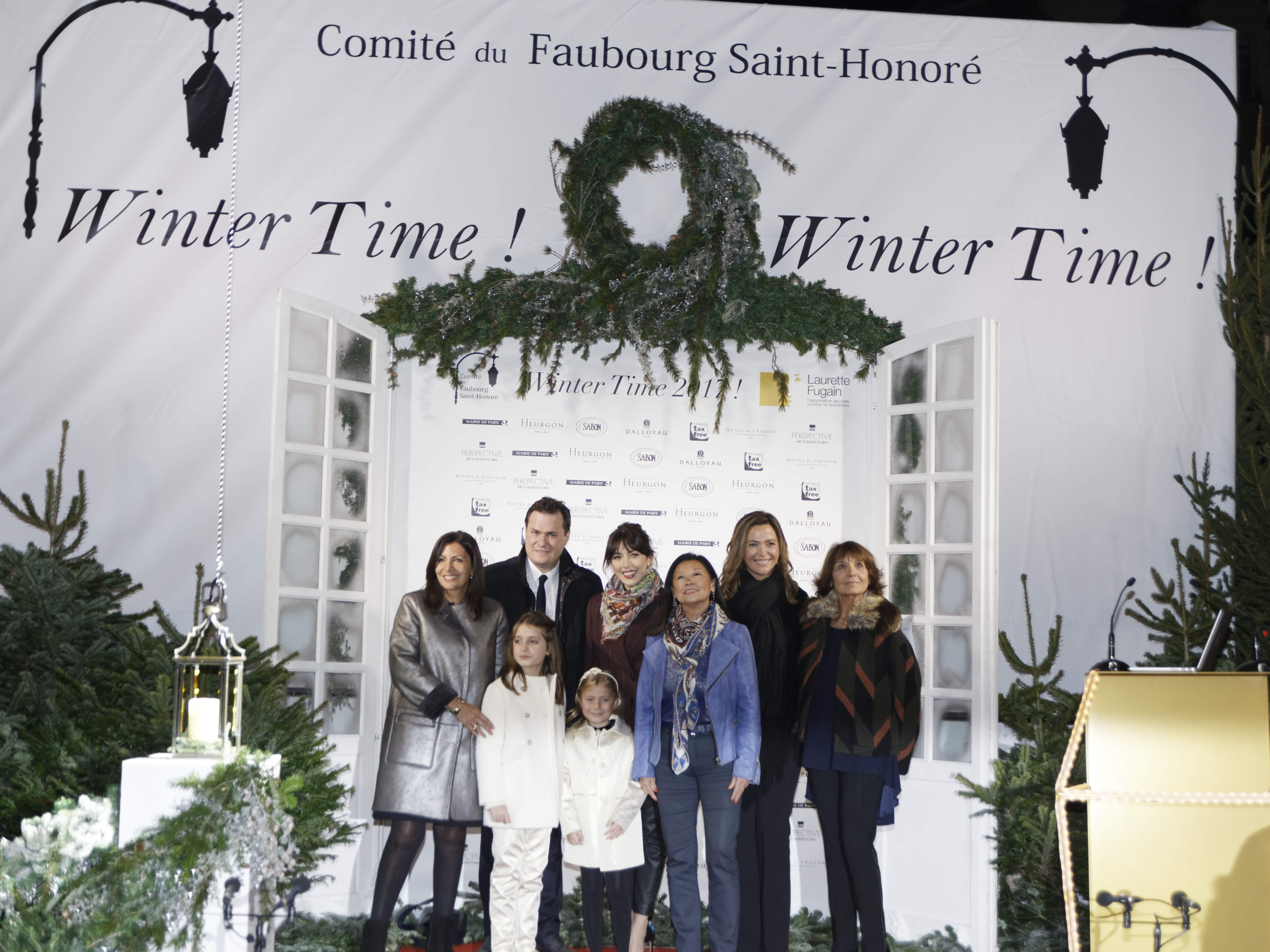 Les illuminations du faubourg St Honoré ont été lancées par Nolwen Leroy entourée de Sandrine Quétier, la maire de Paris Anne Hidalgo, la maire du 8ème arrondissement Jeanne d’Hauteserre, Benjamin Cymerman, président du comité du faubourg St Honoré et Stéphanie Fugain de l’association Laurette Fugain.
