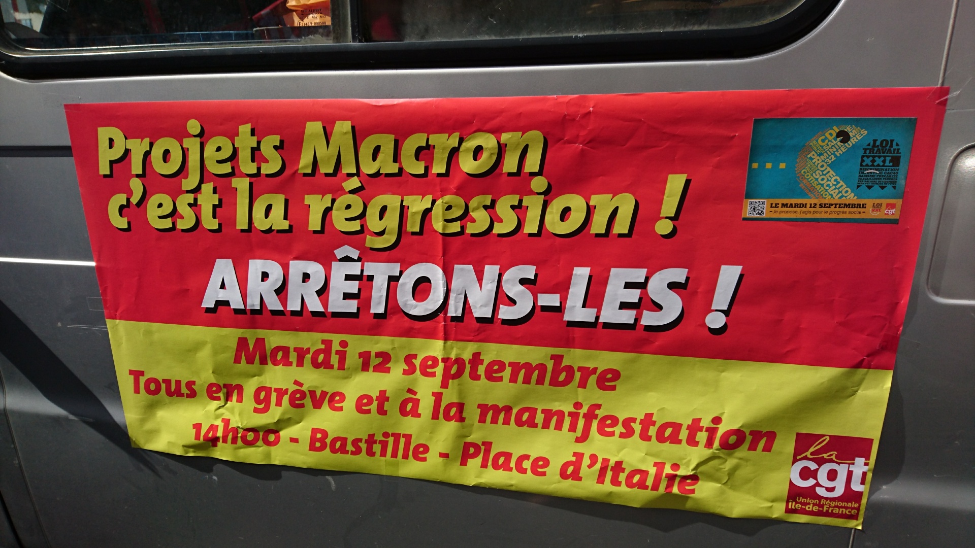 Les Français sont appelés, mardi 12 septembre, à descendre dans les rues pour manifester contre la réforme du Code du Travail. La CGT, en première ligne sur ce front, s’attend à plus de 180 manifestations sur tout le territoire et a recensé 4.000 appels à la grève. Des perturbations sont principalement à prévoir dans les trains de région parisienne (RER A et B).