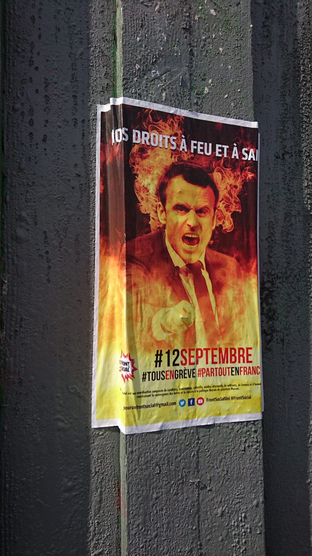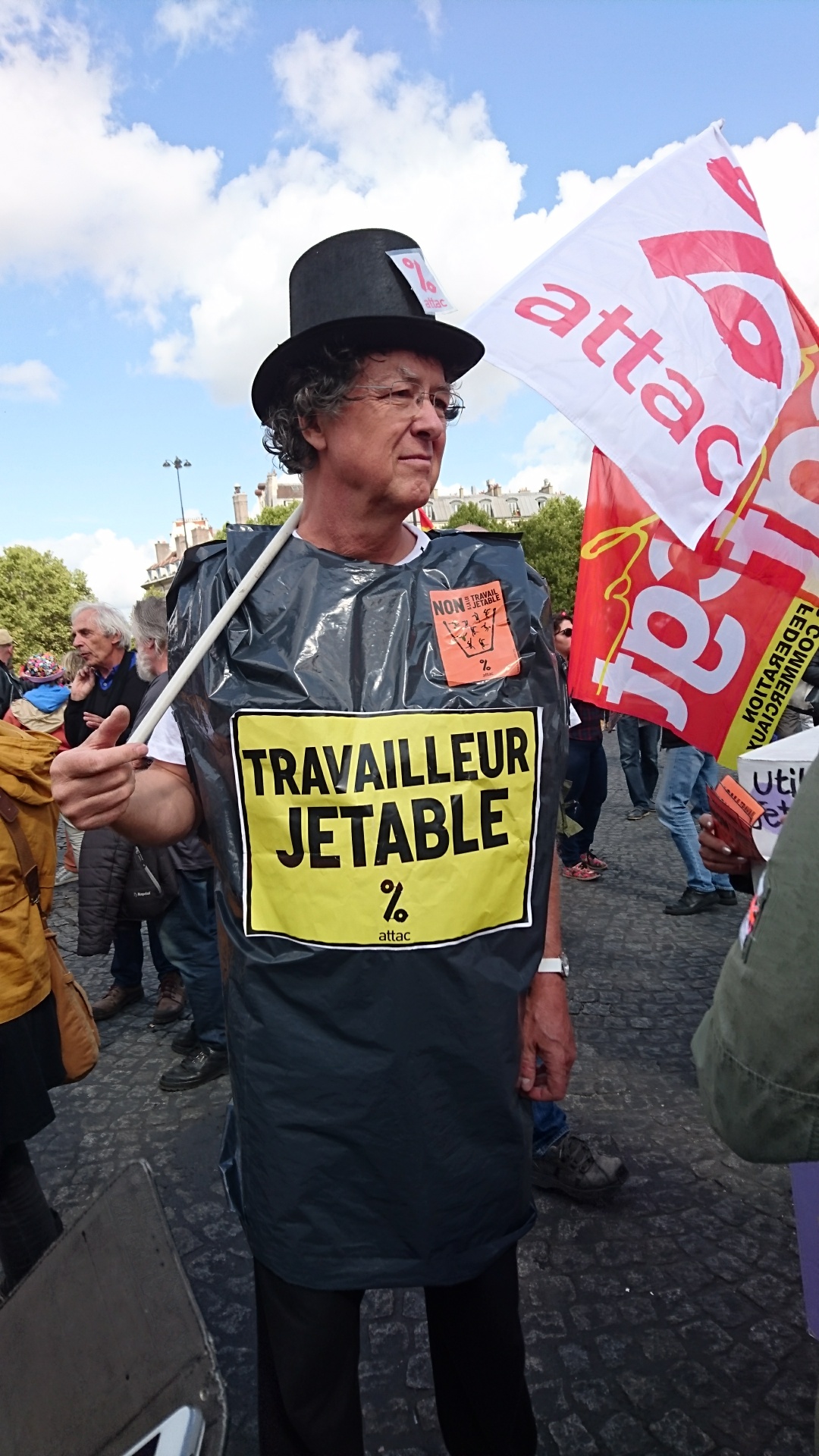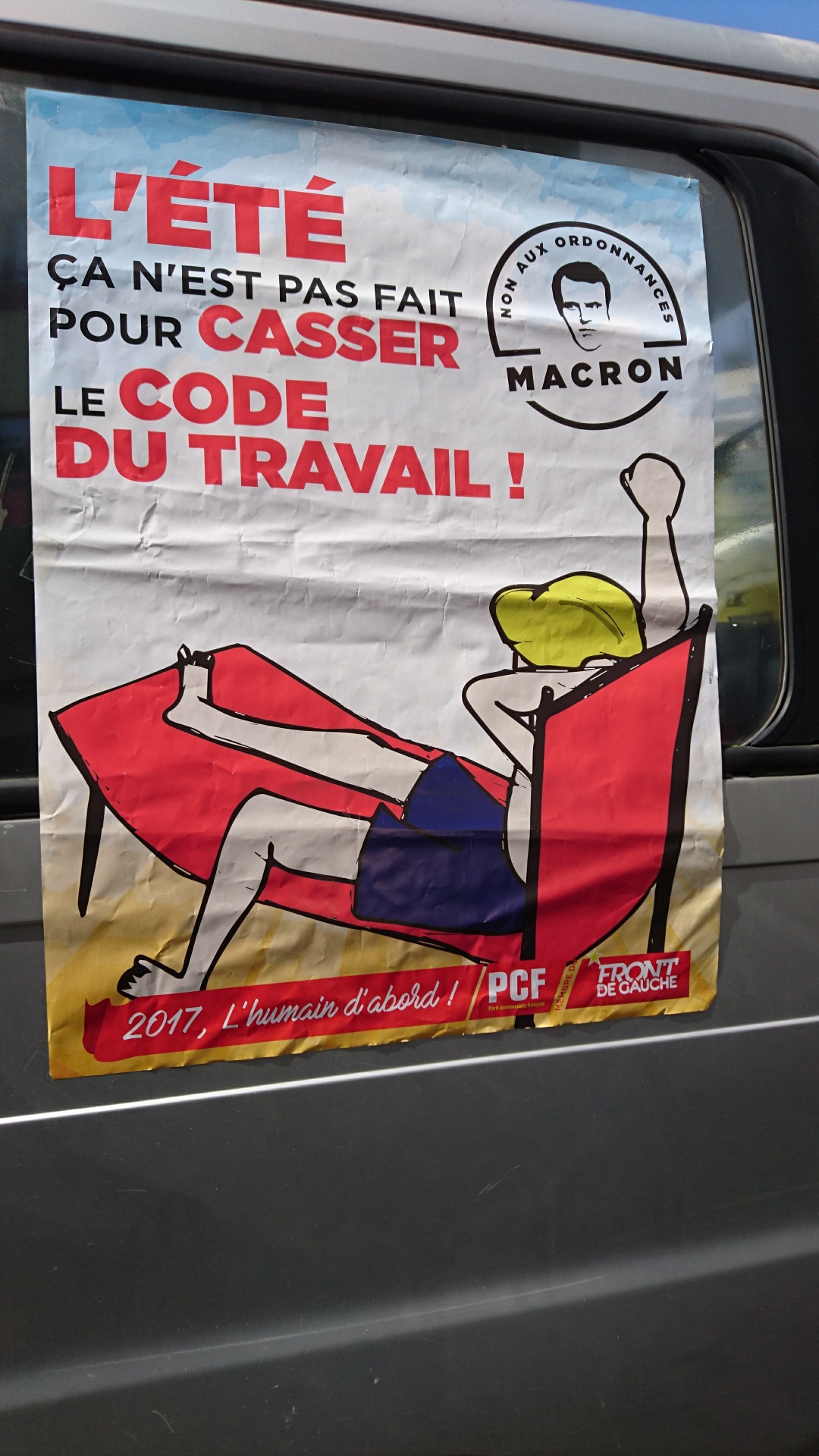 A Paris, le 12 septembre, alors que la manifestation contre la réforme du code du travail était en passe de dégénérer et que les forces de l’ordre tiraient au flashball en réponse aux projectiles lancés par des individus cagoulés. Soudain un homme est arrivé, nu, en jouant de la guitare.