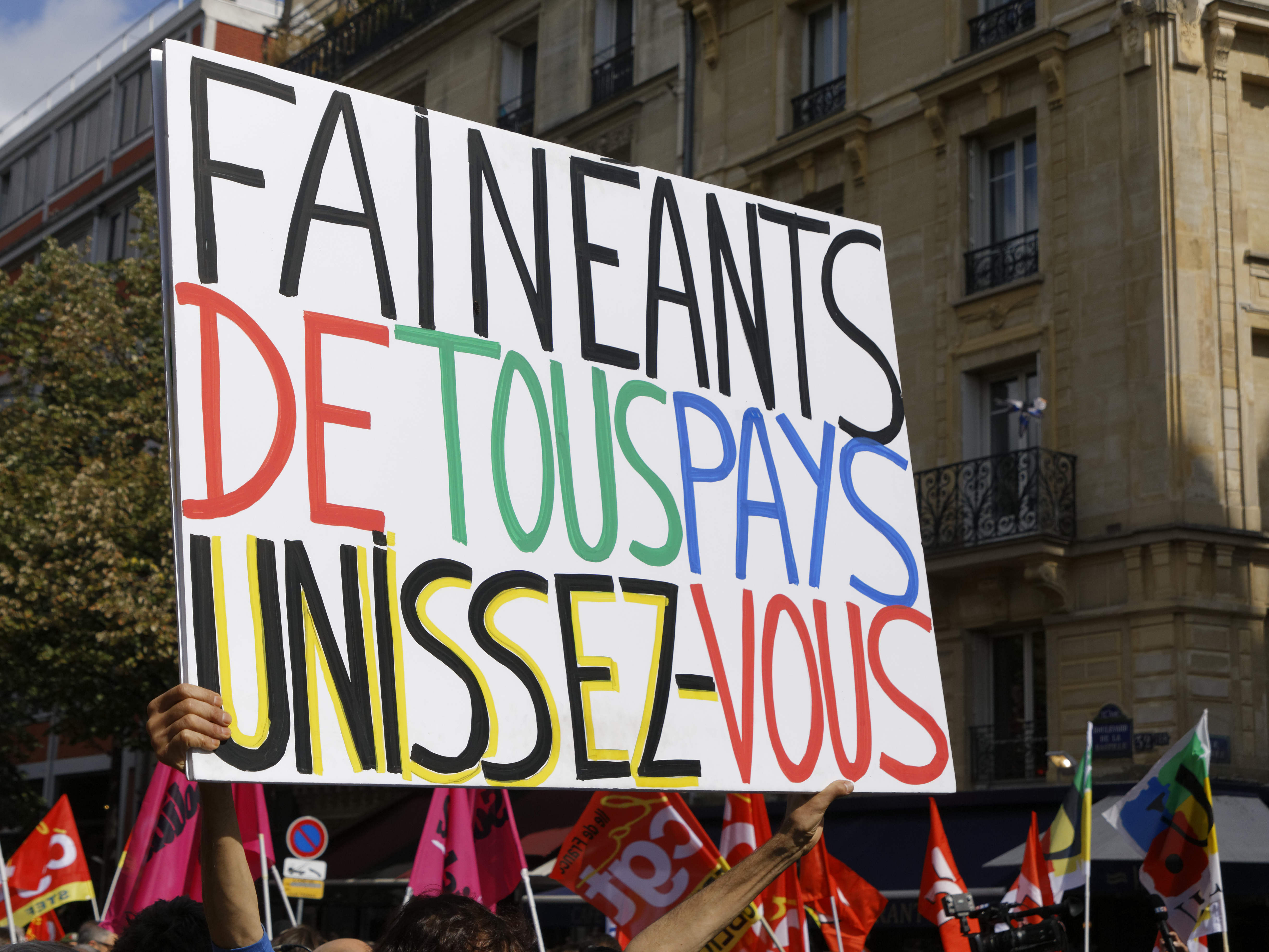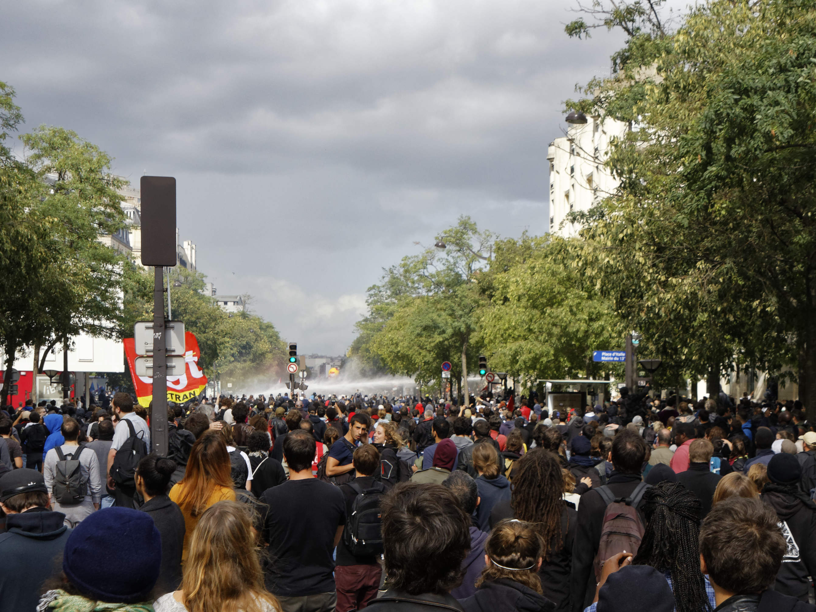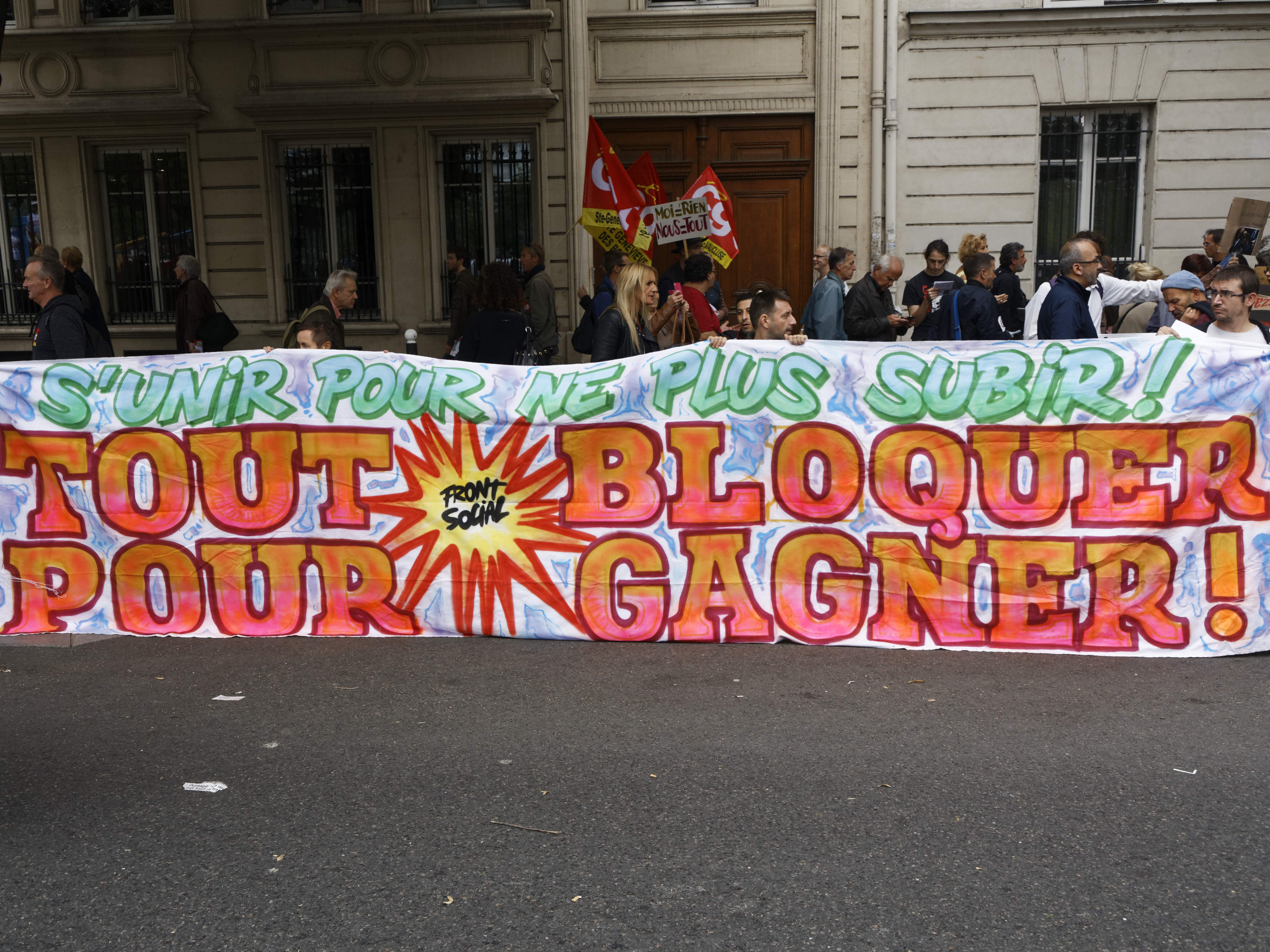 D’après la préfecture de police de Paris, 24.000 personnes ont manifesté dans la capitale ce mardi. La CGT en a compté 60.000. Le cortège s’est élancé dans une ambiance festive de la place de la Bastille vers la place d’Italie, au son d’une fanfare animée par des forains, qui avaient perturbé la circulation dans toute l’Île-de-France pour défendre leur profession ce mardi matin. Parmi les manifestants, des personnalités politiques comme Benoît Hamon, ancien candidat du PS à la présidentielle, ou Pierre Laurent, secrétaire national du PCF, ainsi que des députés insoumis, dont Alexis Corbière. Mais la tension est rapidement montée : des manifestants ont lancé des projectiles sur les forces de l’ordre, qui ont répliqué en faisant usage de gaz lacrymogènes et de canon à eau. La préfecture, qui a fait état de la présence dans le cortège de « 300 personnes encagoulées », a rapporté « quelques dégradations » notamment de vitres et de panneaux publicitaires.