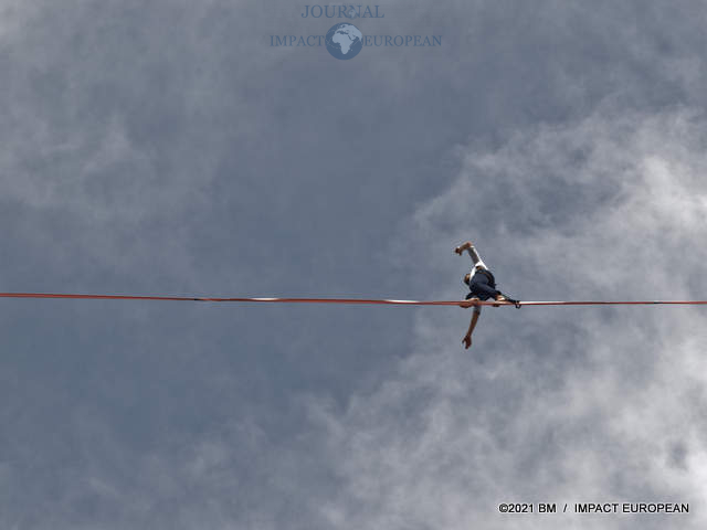 Après la traversée sur un câble du cirque de Navacelles, au nord de Montpellier en 2017, Nathan Paulin est revenu près de 4 ans plus tard. Il a marché sur un câble (slackline) de 670 mètres, à 70 mètres du sol, entre la Tour Eiffel et le théâtre de Chaillot. Pari réussi!