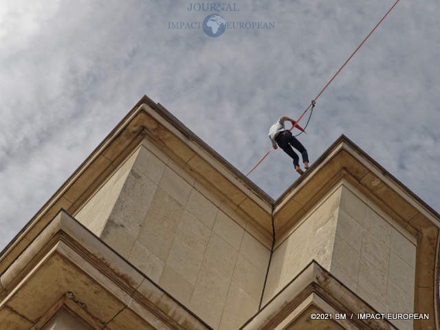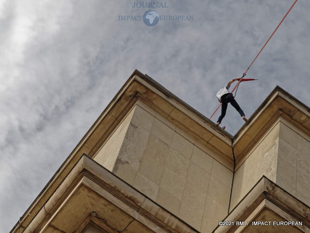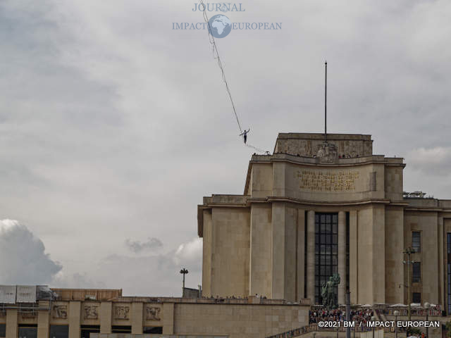 Les 18 et 19 septembre, dans le cadre des JEP et du lancement del’Olympiade culturelle, Nathan Paulin a rejoint le Théâtre de Chaillot depuis la Tour Eiffel en marchant sur un fil.