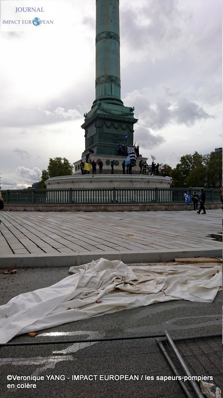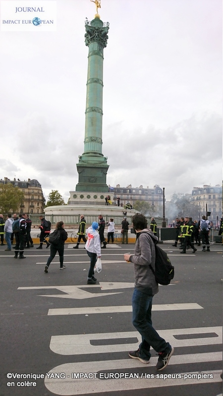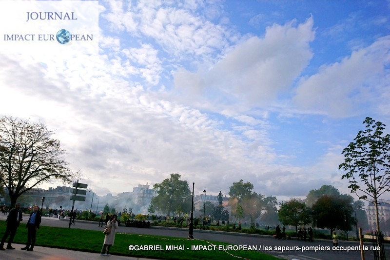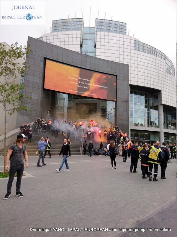 En marge du cortège, plusieurs dizaines de pompiers étaient également rassemblés devant l’Assemblée nationale où ils allumaient des fumigènes et bloquaient la circulation, sous la surveillance de forces de l’ordre appelées en renfort.