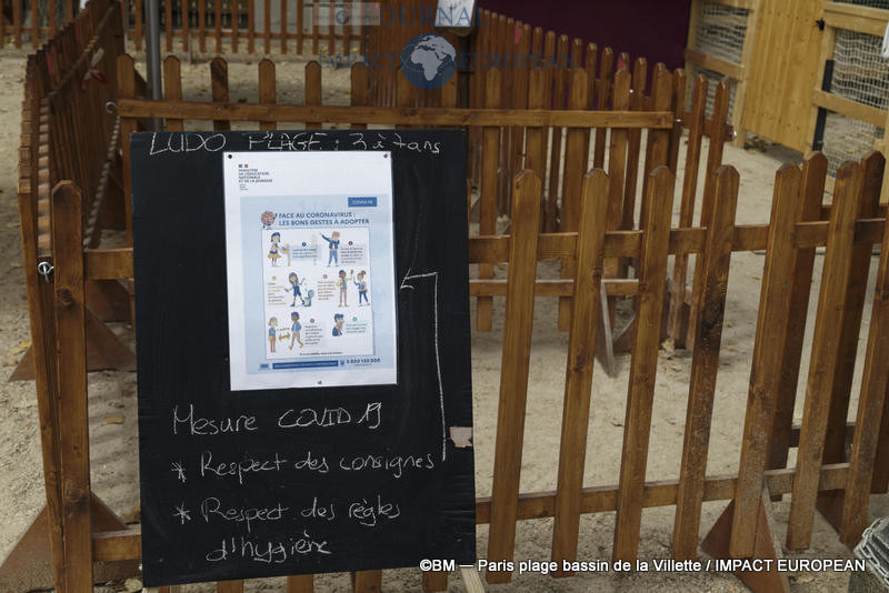 – Utilisation des lavabos munis de savon et solutions hydro-alcoolique à chaque animation au bassin de la Villette ainsi qu’à Paris Plages Rives de Seine.