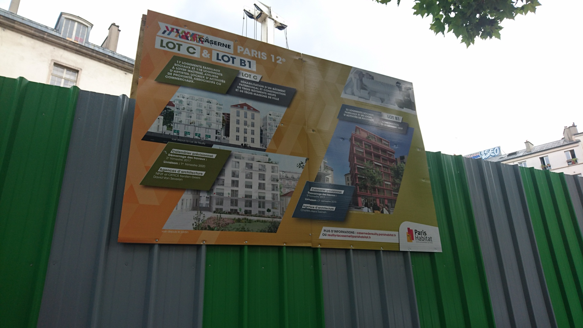 Cédée à la ville de Paris en 2013, la caserne était un lieu d’expositions temporaires et un lieu d’héhergement d’urgence pour personnes en difficulté jusqu’aux premiers coups de pelle de la démolition partielle.