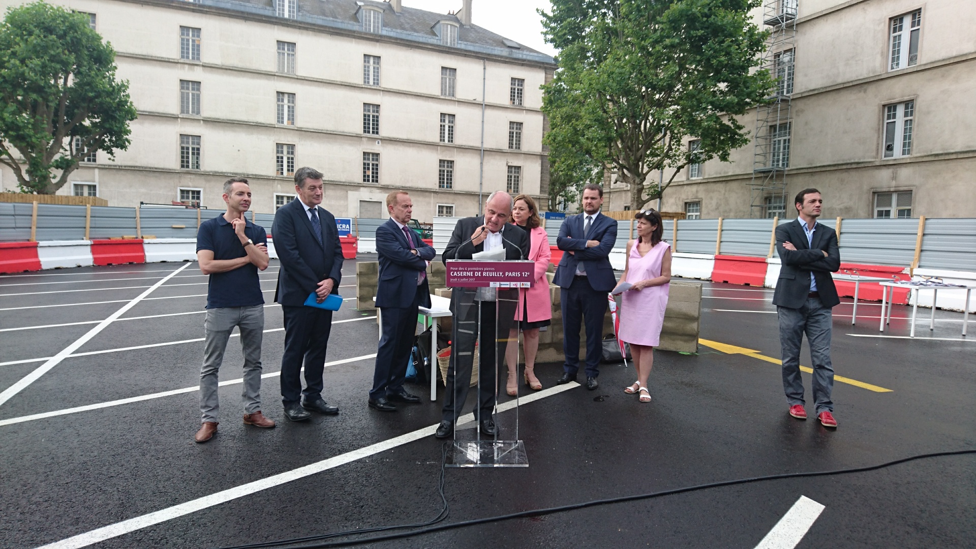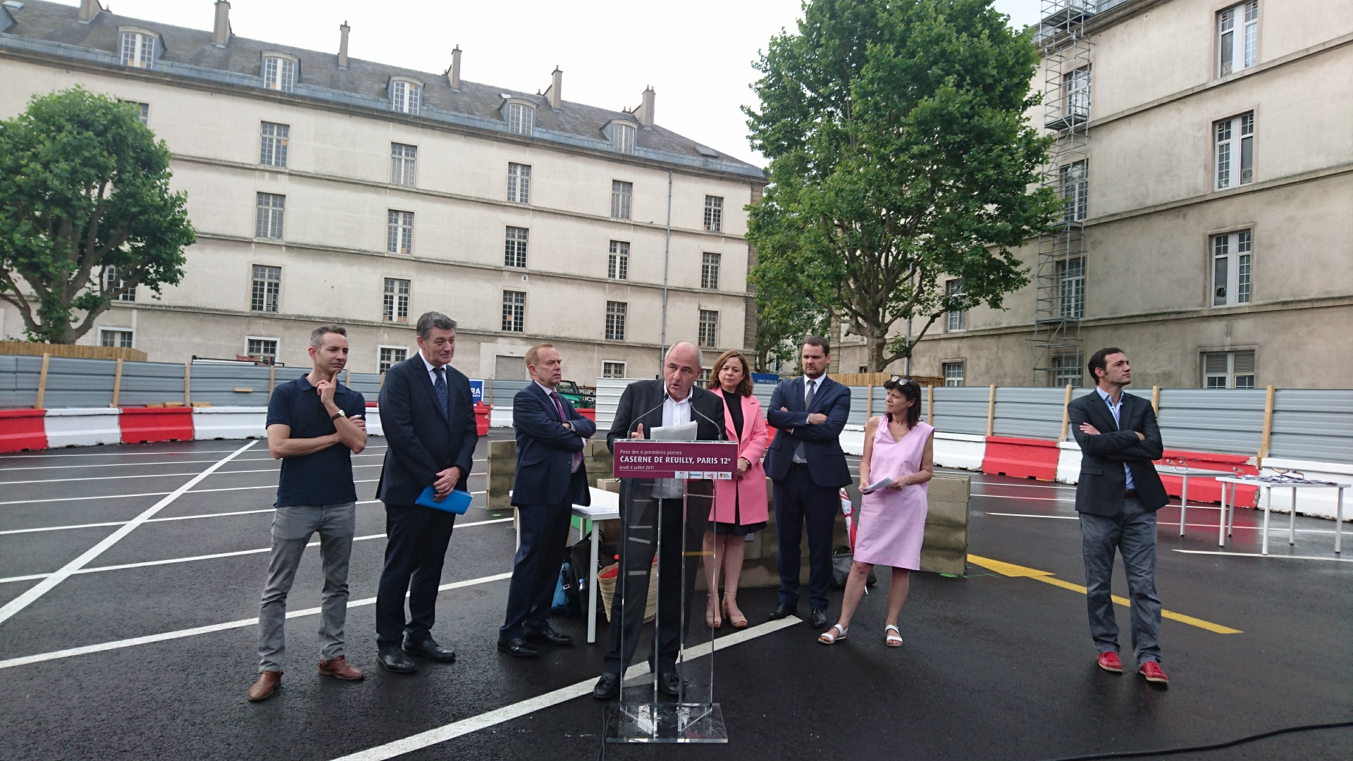 Jeudi 6 juillet, la maire du 12éme entourée de Ian Brossat, adjoint chargé du logement et de l’hébergement d’urgence, Pénélope Komitès chargée des espaces verts et Jean-Louis Missika chargé de l’urbanisme, de l’architecture et du projet du grand Paris, a posé la première pierre du projet de réaménagement de la Caserne de Reuilly.