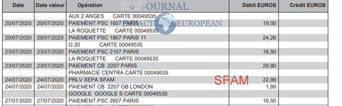 Suite à nos informations obtenues de sources officielles et même de nombreux clients, la SFAM aurait facturé en juillet plus de 3000 clients sur un total de 7000, pour un montant de 22,99 euros sous prétexte qu’en mois d’août ils sont fermés, et que le montant représenterait leur assurance sur le mois d’août, ce qui s’est avéré être une fraude du fait qu’au début du mois d’août, les clients étaient à nouveau débités par la SFAM.