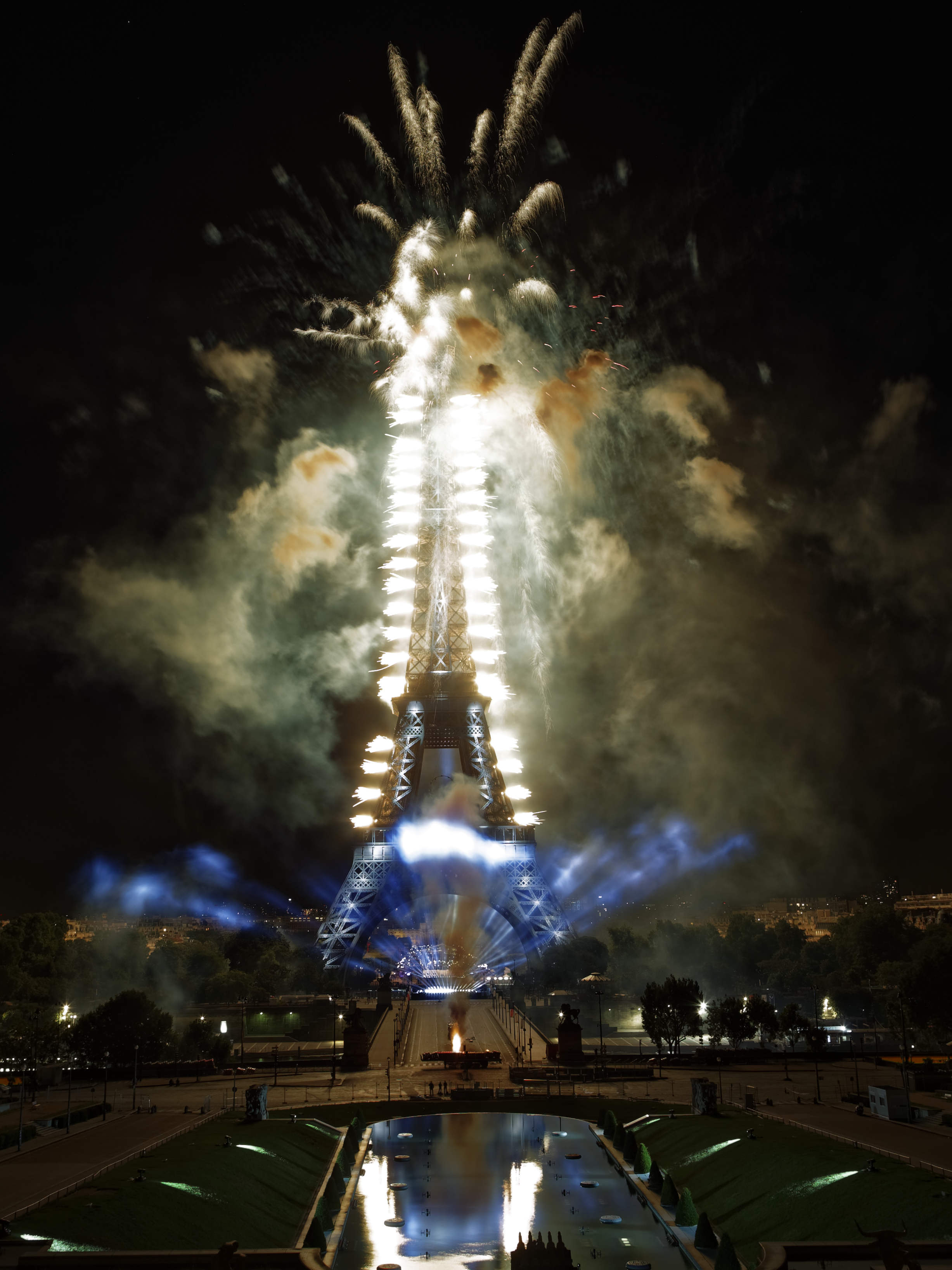 Les plus belles images de feu d’artifice ont été signées par l’artificier bordelais David Proteau, la représentation pyrotechnique était tirée avec un moins 1000 feux d’artifice depuis la Tour Eiffel pendant près de 35 minutes, dans un cadre exceptionnel.