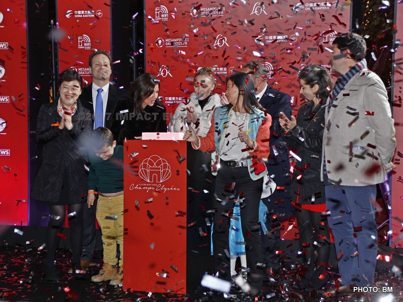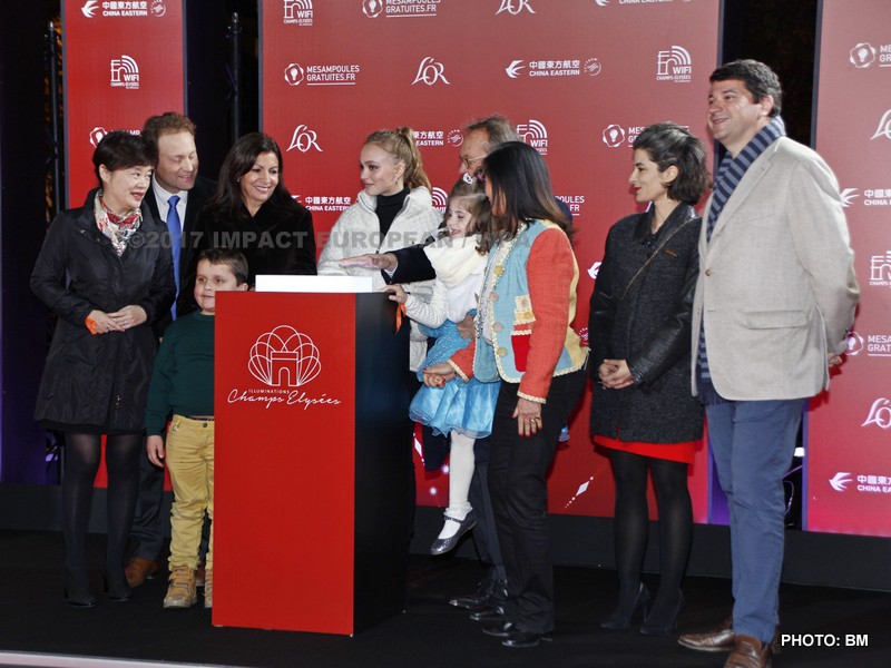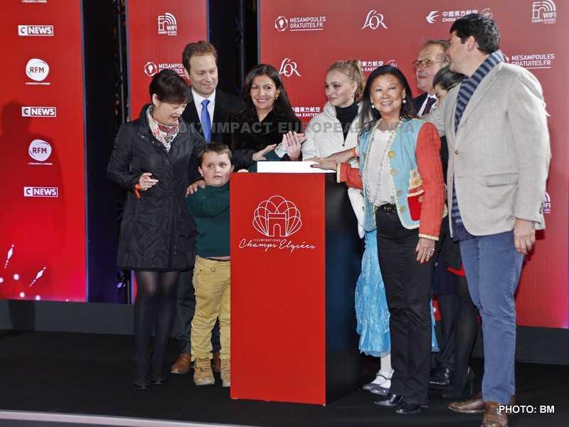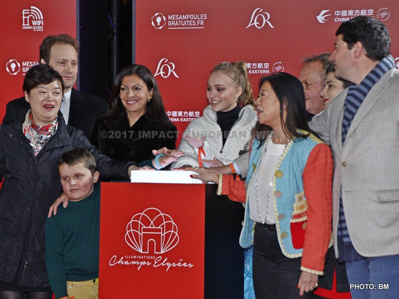 La maire de Paris Anne Hidalgo a inauguré le dispositif lumineux au côté de l’actrice et mannequin franco-américaine Lily-Rose Depp, marraine des illuminations cette année, souriante et « très heureuse d’être là ». La fille de Johnny Depp et Vanessa Paradis, entourée de deux enfants suivis par l’association « Petits Princes » et d’Anne Hidalgo, a pressé le bouton permettant d’allumer le million d’ampoules disséminées sur les 400 arbres de l’avenue.