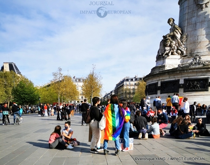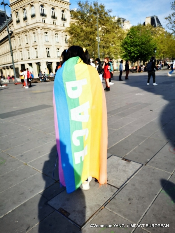 Sur les pancartes, mêlées aux drapeaux arc-en-ciel, on pouvait lire: