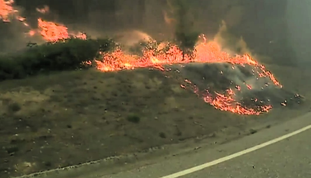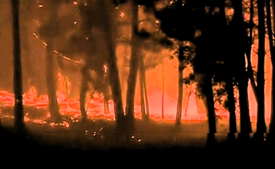 De chaque côté de la route nationale IC8, sur au moins 20 km, une épaisse couche de fumée blanche restait suspendue au-dessus des arbres carbonisés et du sol noirci.