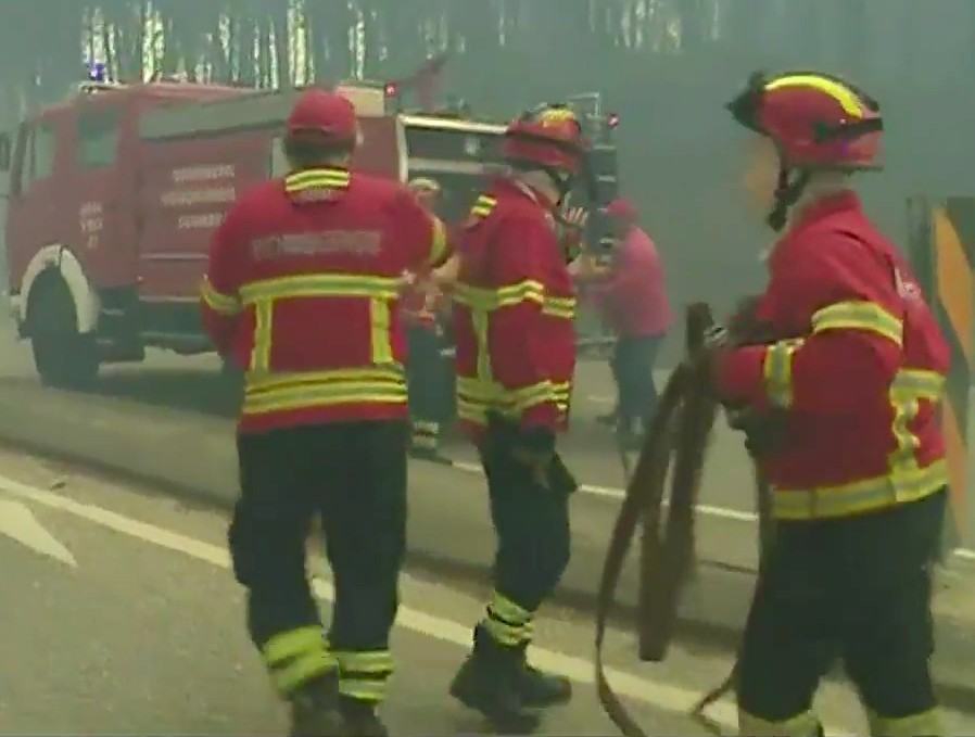 En milieu de journée, le feu se poursuivait sur quatre fronts, dont deux d’une très grande violence, selon les autorités, et quelque 900 pompiers et près de 300 véhicules étaient toujours mobilisés pour combattre ce sinistre, le plus meurtrier de l’histoire récente du Portugal.