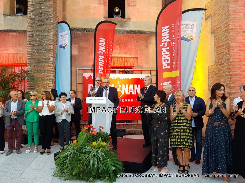 2 septembre 2019 – 18h – Jean-Marc Pujol, maire de Perpignan, entouré de Renaud Donnedieu de Vabres, Président de Visa et de Jean-François Leroy, Directeur, a ouvert le bal par un discours dans lequel il a livré son point de vue sur l’image, insistant sur la réflexion à une époque où tout le monde photographie quotidiennement le monde qui l’entoure avec son smartphone. L’image est souvent tromperie, il importe de la décoder, a-t-il précisé, ajoutant que Visa, c’est pas seulement les guerres, c’est un regard sur le monde tel qu’il est, un regard libre de photographes engagés et passionnés.