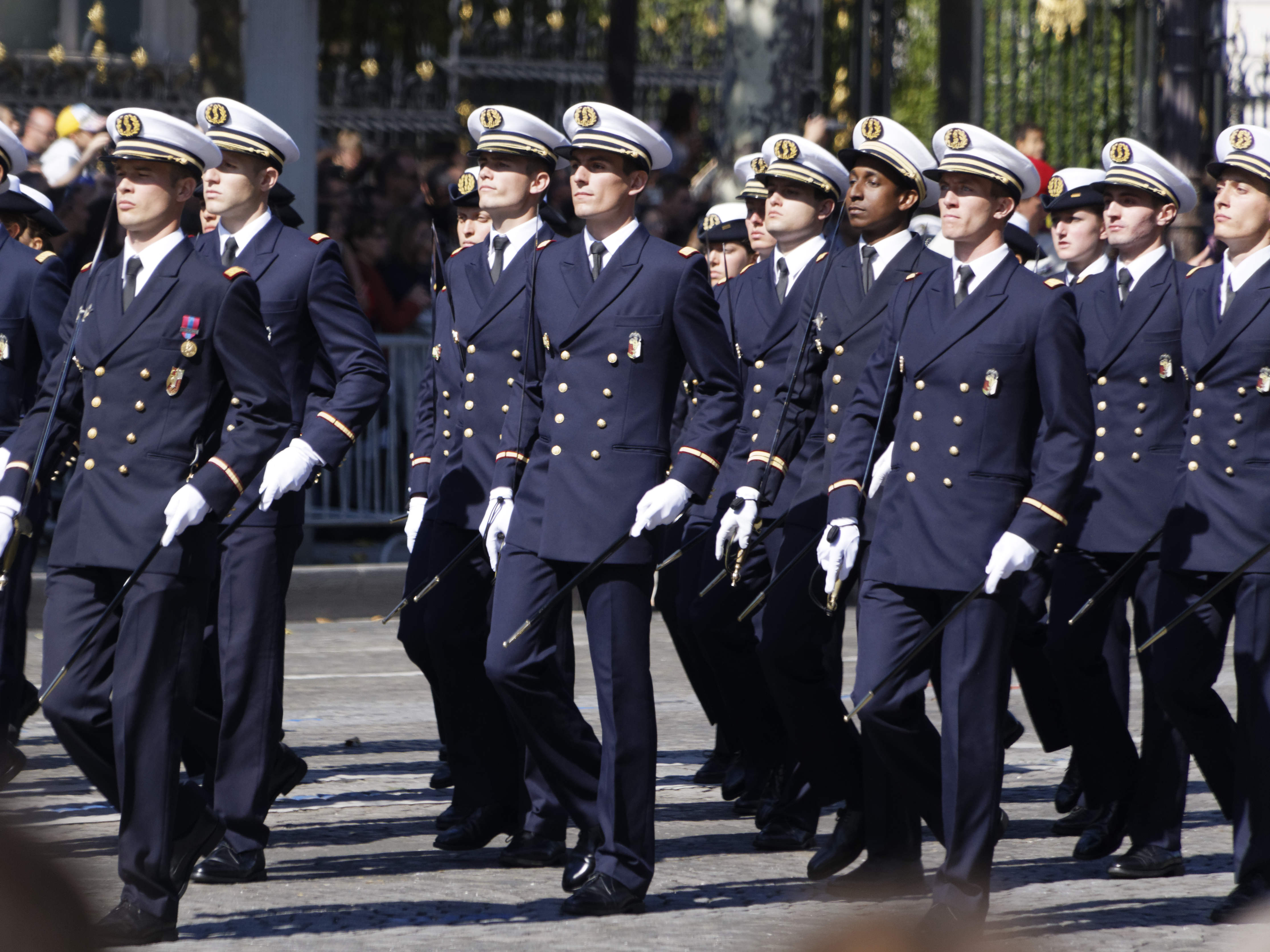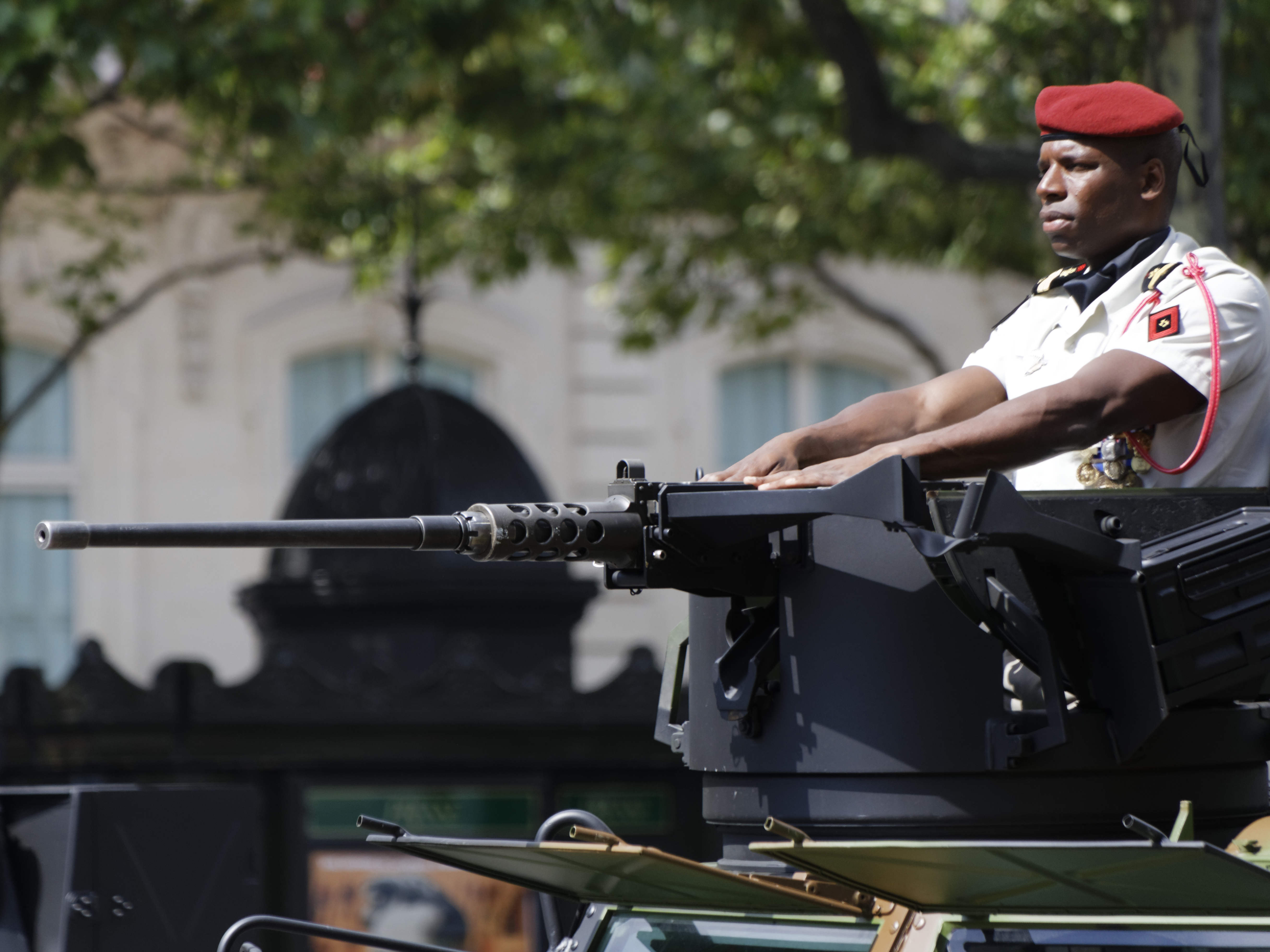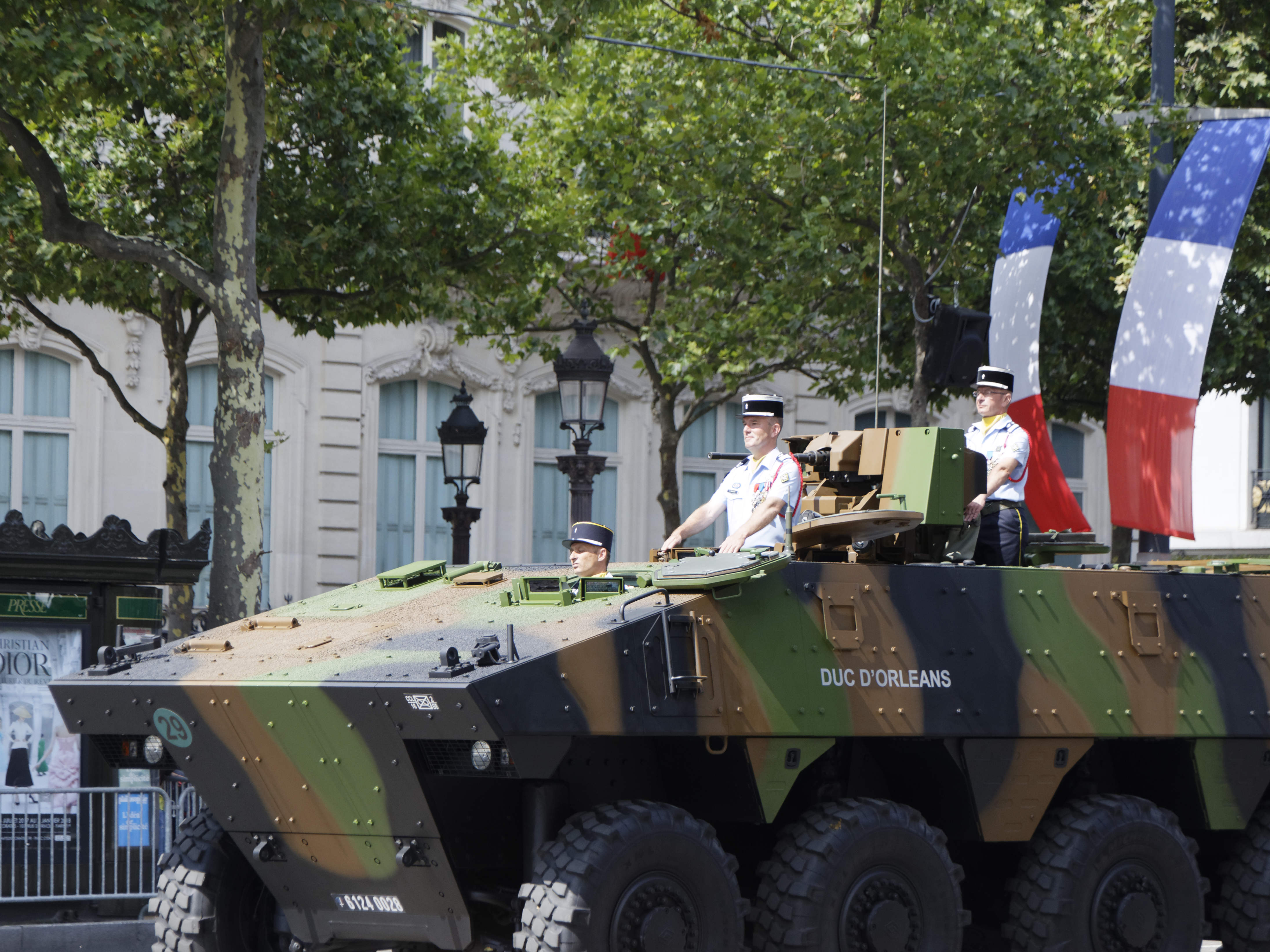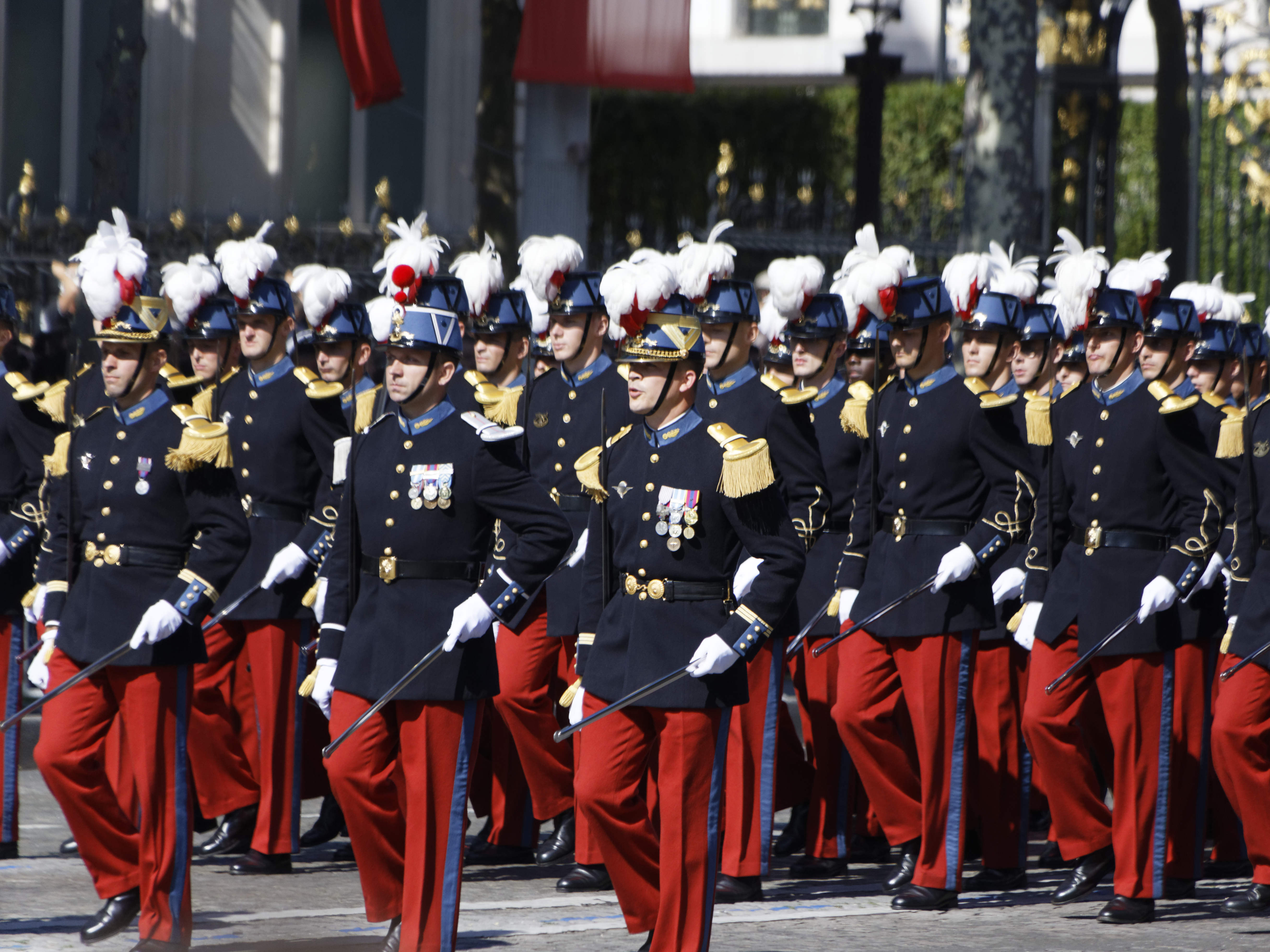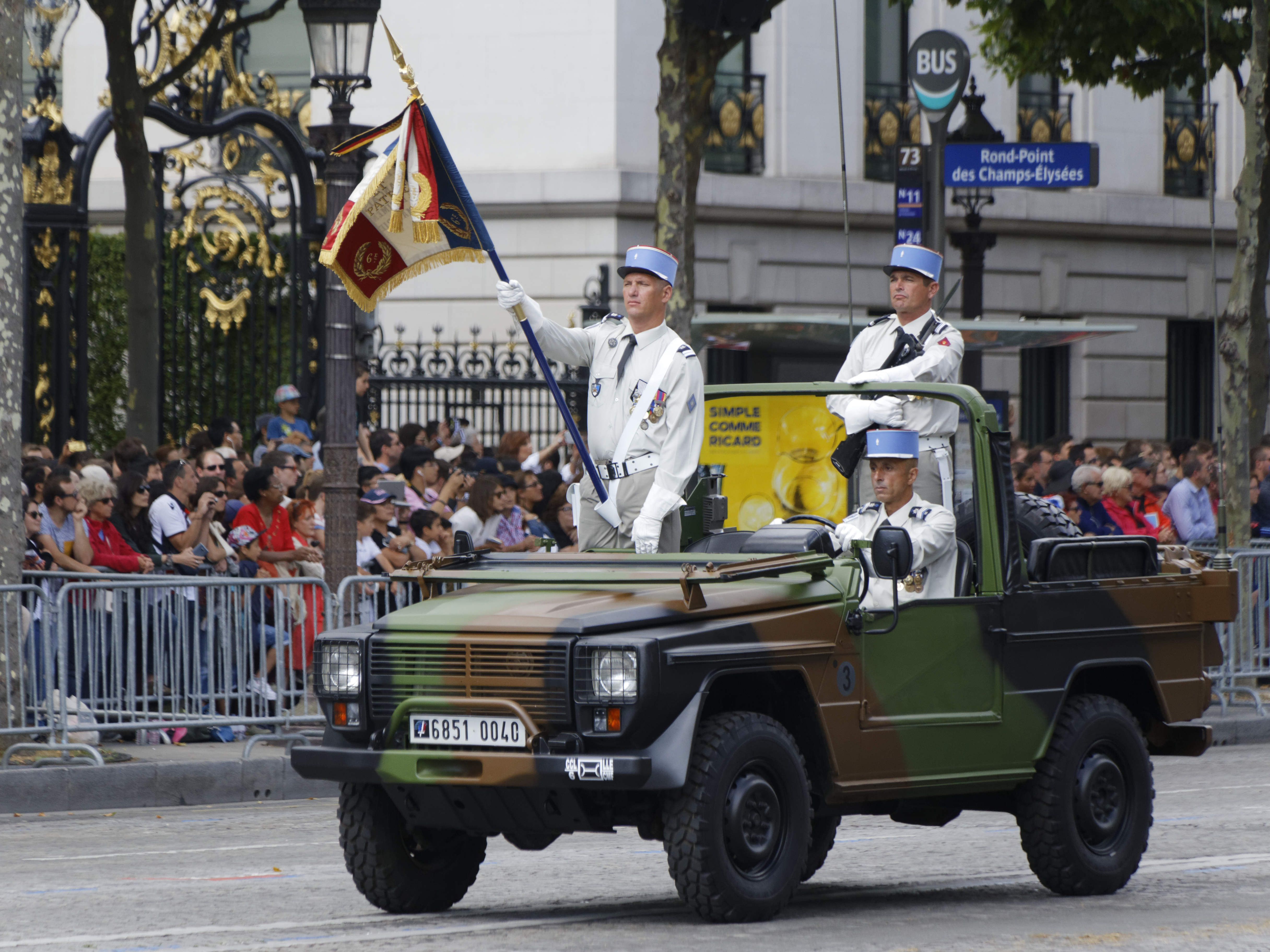 Précédé des cavaliers de la garde républicaine et entouré de motards de la gendarmerie, le chef de l’Etat, debout sur un command-car, a ensuite rejoint la tribune présidentielle place de la Concorde, où se trouvait le président des Etats-Unis, Donald Trump.