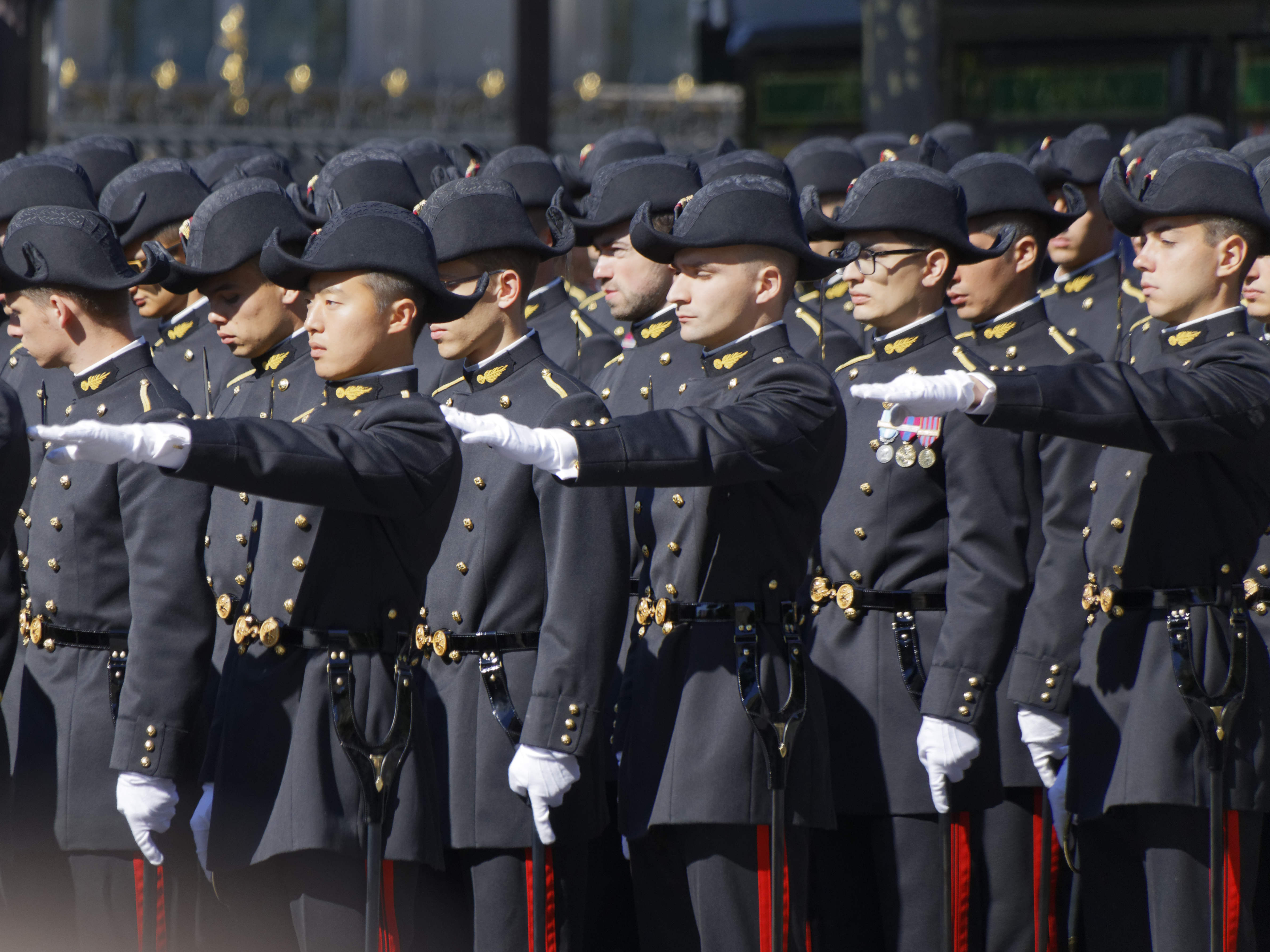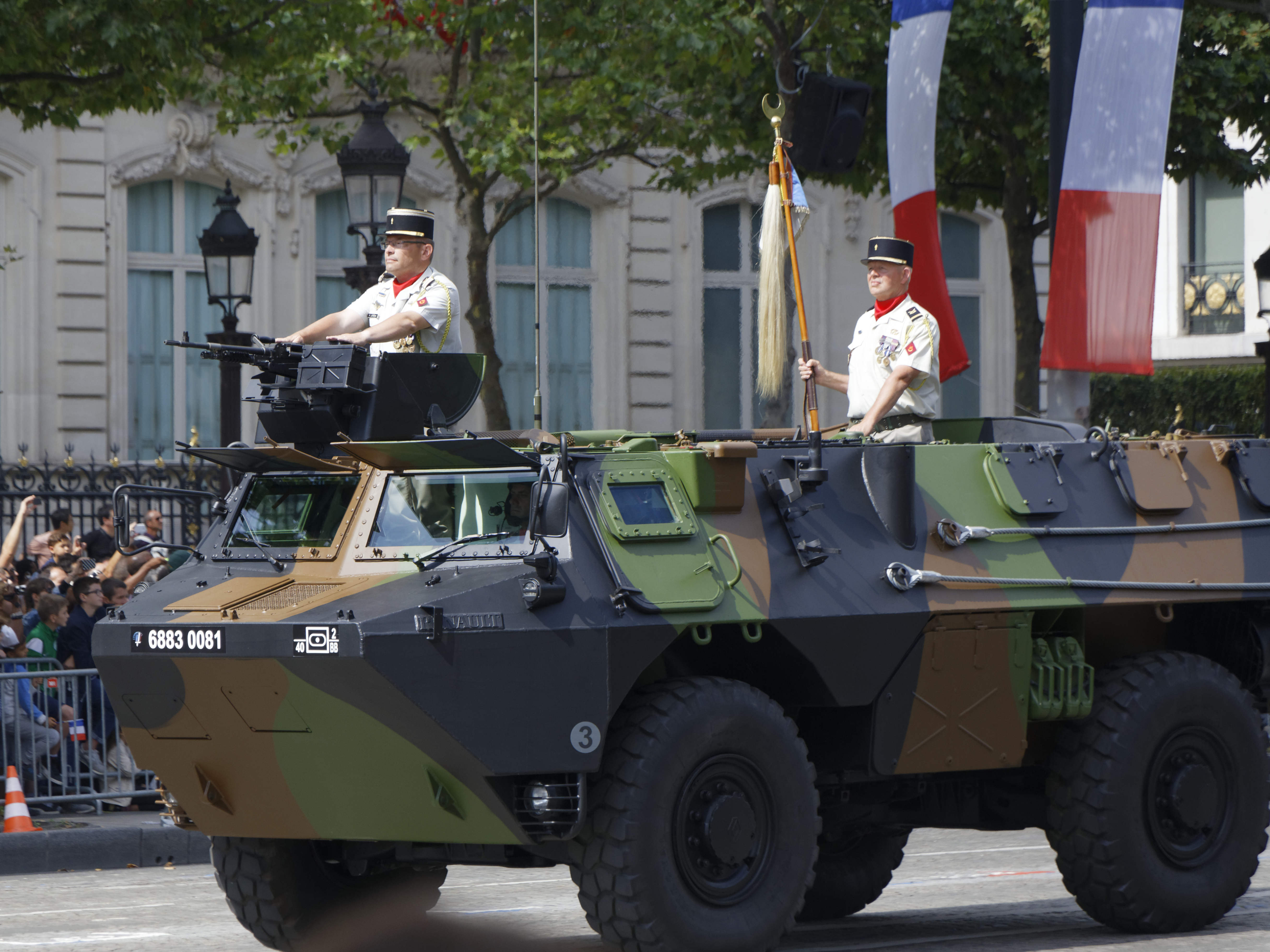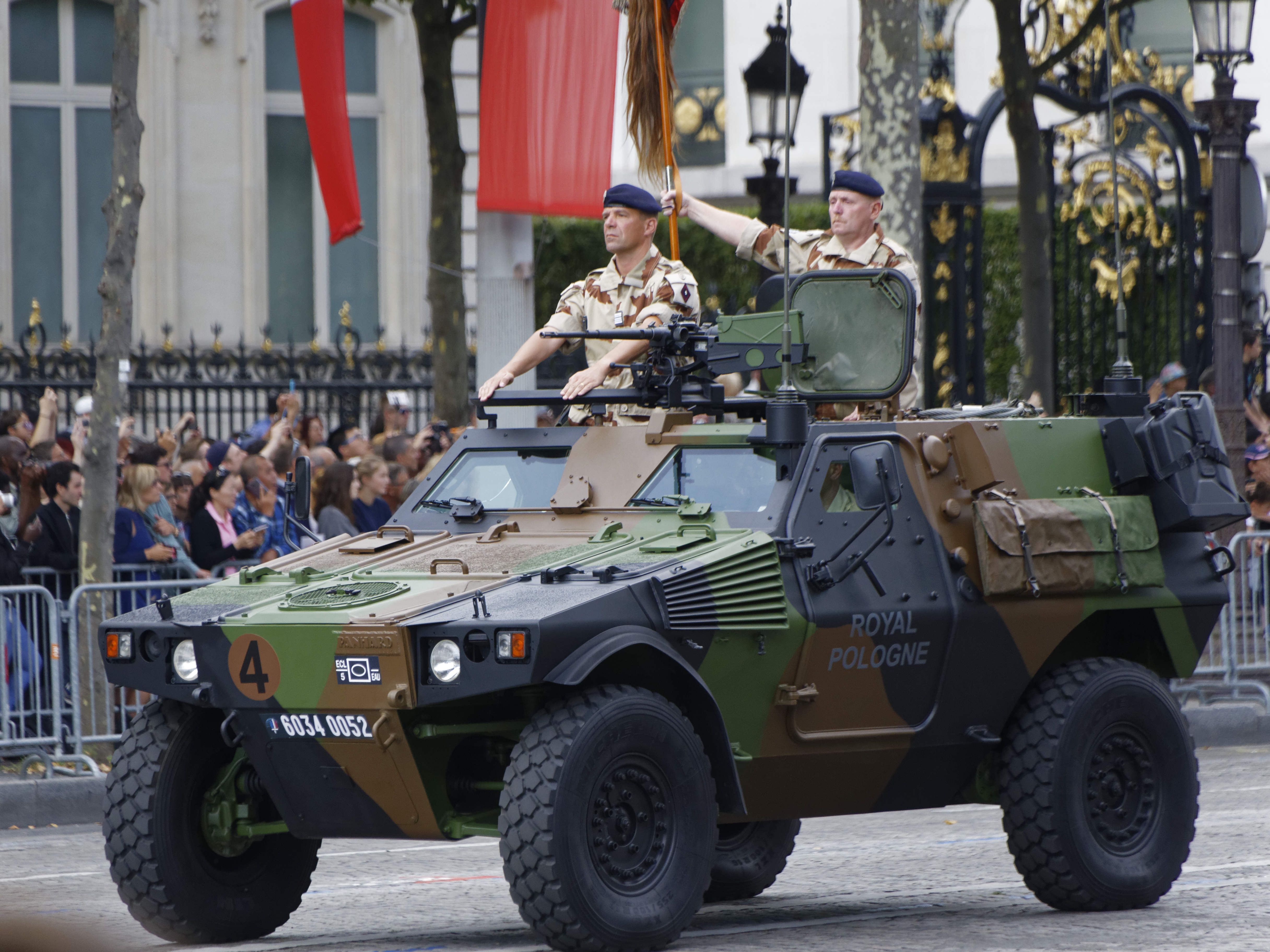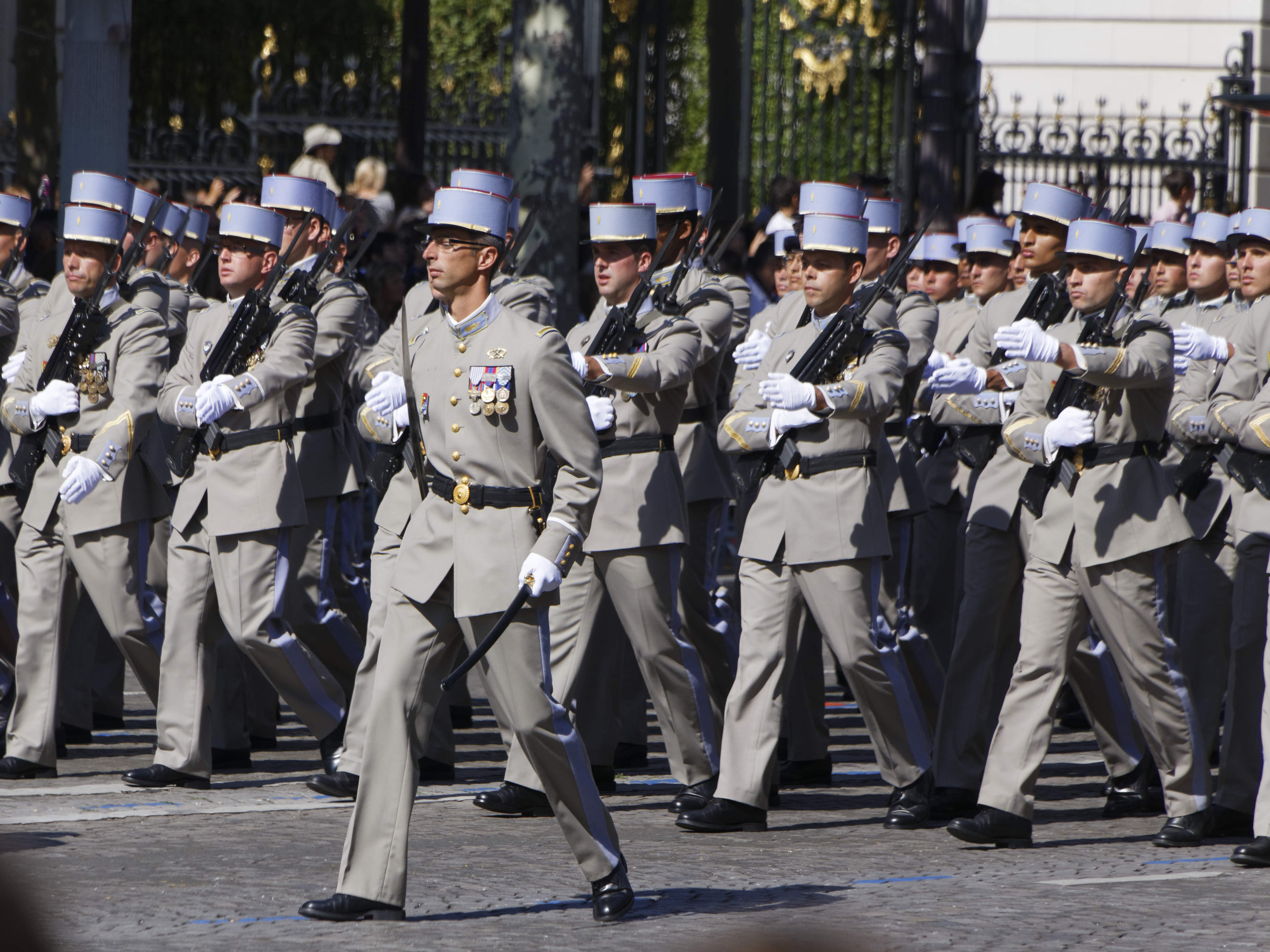 La patrouille acrobatique de l’US Air Force et deux avions de chasse furtifs américains F-22 ont ouvert le bal aérien du défilé au côté de la Patrouille de France, vivement applaudie par Donald Trump. Puis, en uniformes d’époques, cinq « Sammies » – surnom des soldats de l’Oncle Sam engagés dans la Première Guerre mondiale – ont pris le relais, ouvrant à leur tour la marche des troupes au sol, avant le passage d’un détachement américain interarmes.
