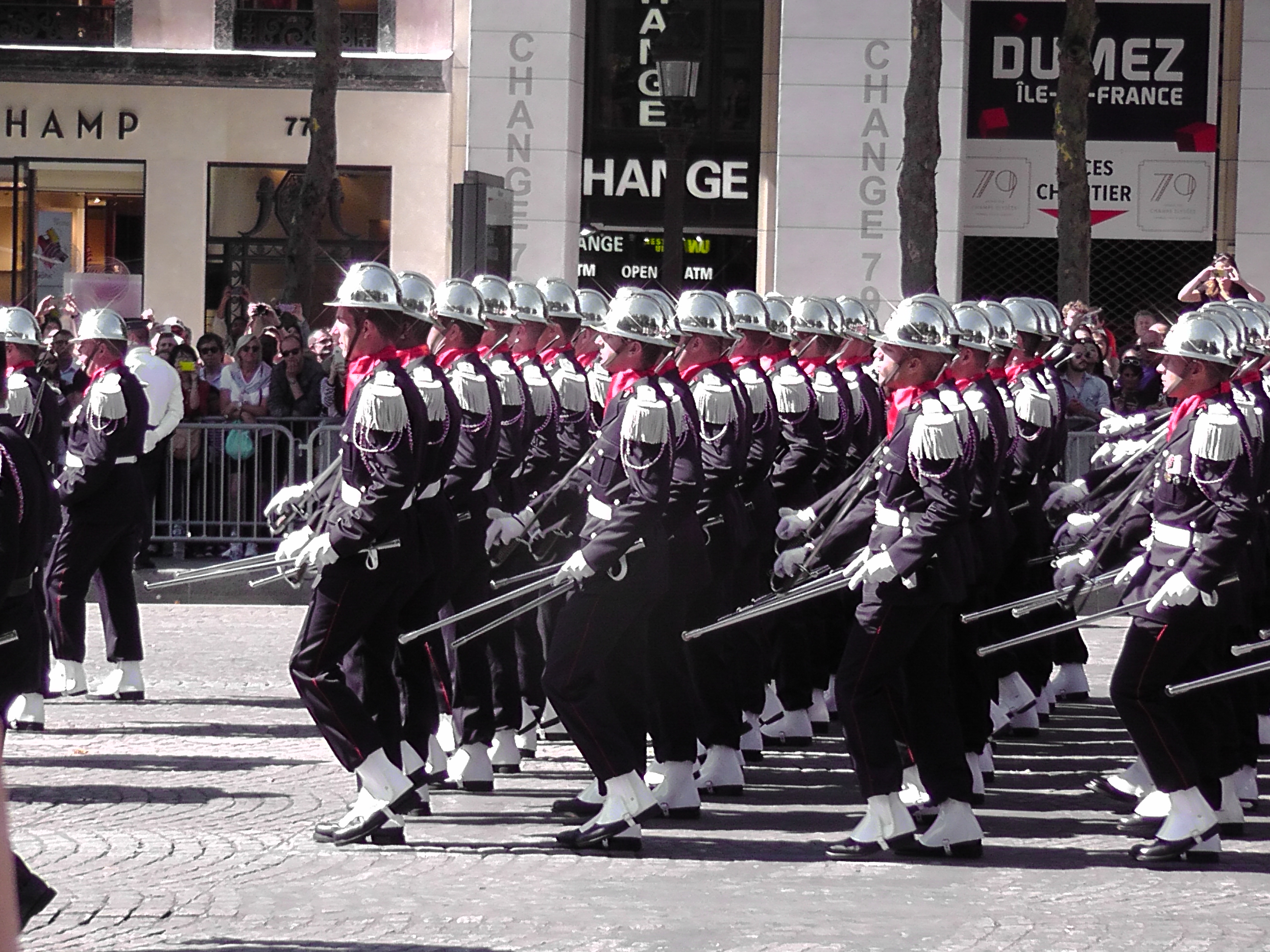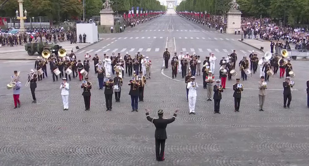 Innovation remarquée : la conclusion par une fanfare composée de musiciens de la Garde Républicaine, de sapeurs-pompiers de Paris ou de la Légion, qui ont entonné un pot-pourri des tubes de Daft Punk, le plus américain des groupes français dans une chorégraphie millimétrée.
