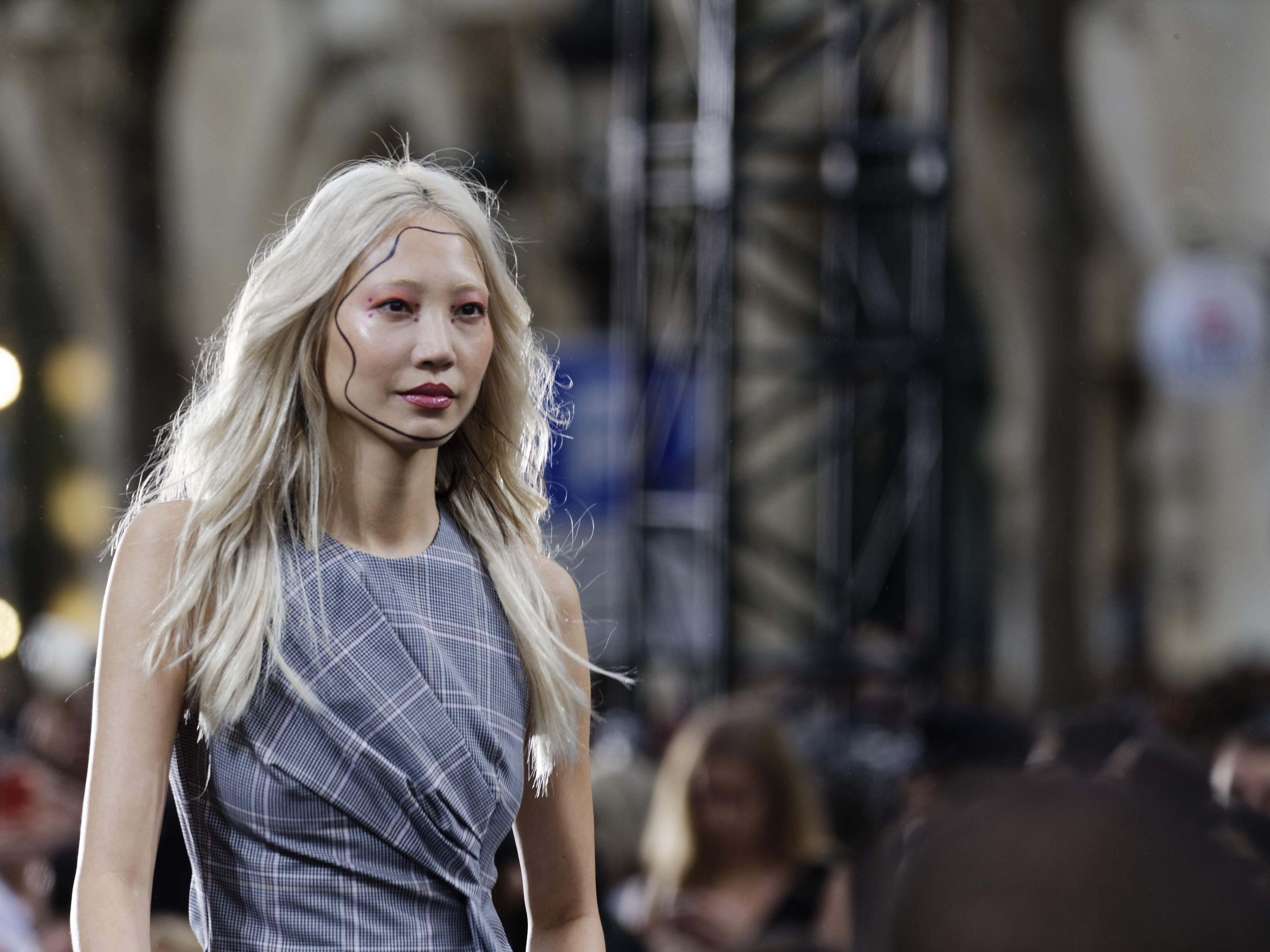 Malgré quelques gouttes de pluies avant l’heure H, le temps fut clément pour voir défiler les mannequins et célébrités coiffées par la team de Stéphane Lancien et maquillées par Val Garland make-up artiste de la maison l’Oréal. Pour ce défilé en partenariat avec les maisons Balmain, Isabel Marant, Cédric Charlier, Ashi Studio, Courrèges, Sonia Rykiel, Wanda Nylon, Pierre Hardy, Giambattista Valli, Haider Ackermann, Mulberry, David Koma, Olivier Theyskens ou encore Off-White…