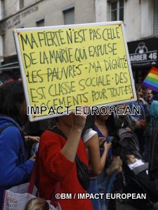 Cette gay pride organisée par l’association “St Denis ville au coeur” avait pour but de montrer que l’homophobie n’était pas l’apanage des banlieues, nord-est en particulier et de lutter contre elle partout en France avec la même intensité. Des représentants de plusieurs associations étaient présents dans le cortège dont Aurore Fourcy (Inter-LGBT), Clémence Zamora-Cruz (porte-parole Inter-LGBT) ou Joel Deumier (SOS Homophobie), Yanis Khames et Lucas Poissonnet (St Denis ville au coeur) tout comme des immigrés et des victimes des discriminations sociales et raciales. Un seul slogan pour tous:”De Paris à Saint-Denis, LGBT, fiers, unis, indivisibles”pour cette Marche des Fiertés sans chars ni musique techno, qui a rassemblé plus d’un millier de personnes de l’autre côté du périphérique.