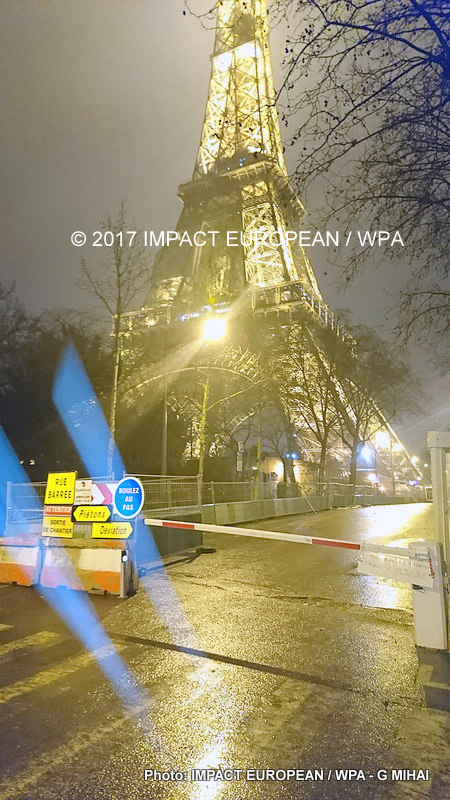Le premier volet de transformation de la Tour Eiffel a commencé en septembre dernier avec un perfectionnement de la sécurité avec trois objectifs: amélioration esthétique,renforcement de la protection des visiteurs et des personnels et fluidité des accès. Mi-janvier, un programme d’investissement , doté de 300 millions d’euros sur quinze ans a été annoncé par la maire de Paris. Actuellement, les installations de protection sont temporaires et disgracieuses, de hautes grilles métalliques et des bâtiments modulaires gâchent la perspective. Fin mars 2017, le Conseil de Paris a voté le projet qui prévoit une paroi en verre sur deux côtés, côté Seine et côté avenue Gustave-Eiffel. À la demande de la Préfecture de Police, l’entrée du public se fait par les jardins, situés sur les parties latérales du monument. Les travaux ont commencé en septembre 2017.