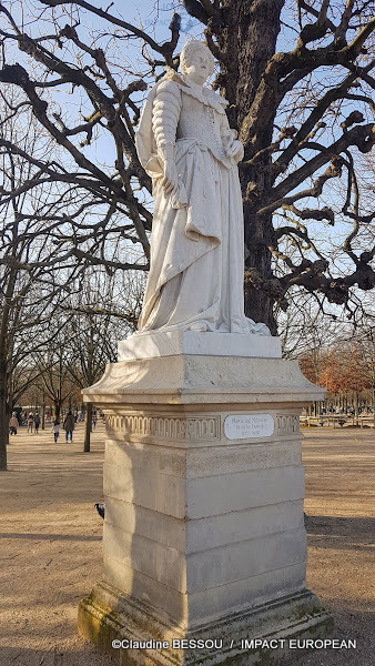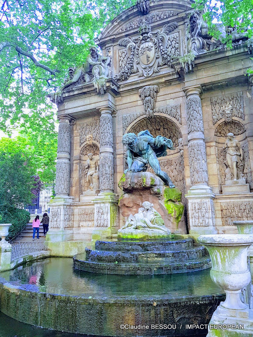 Le Jardin du Luxembourg compte 106 statues parsemées à travers le parc. Elles représentent des Reines, des Dames illustres, des Saintes, des figures allégoriques, des animaux, des artistes…Sans oublier la monumentale Fontaine de Médicis et son bassin, qui s’appelait alors, la Grotte du Luxembourg. La Fontaine de Médicis est un monument aux multiples facettes, elle est longée de deux rangées de platanes et l’architecture en trompe-l’œil, donne l’illusion d’un plan d’eau incliné. Elle est à l’origine un caprice Italien de Marie de Médicis. Le projet qu’elle conçoit est inspiré du style Florentin qui a marqué son enfance. La Fontaine Médicis est classée monument historique depuis 1889.