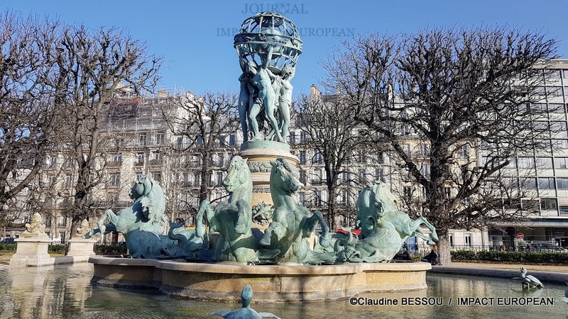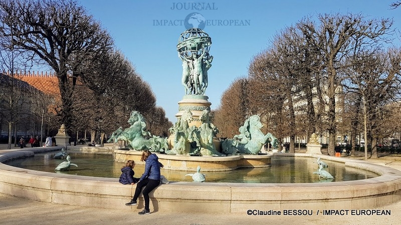 La Fontaine des Quatre Parties du Monde, en bronze, se trouve à l’entrée du Jardin des Grands Explorateurs. Le globe de la fontaine est orné des signes du zodiaque et il représente les quatre parties du monde :