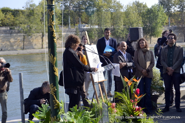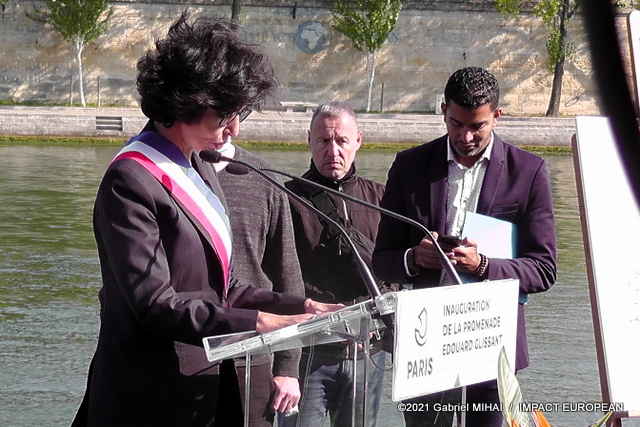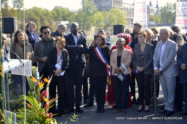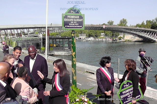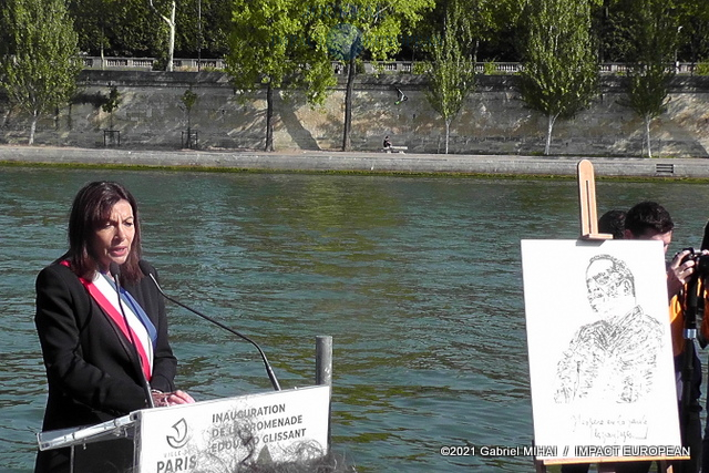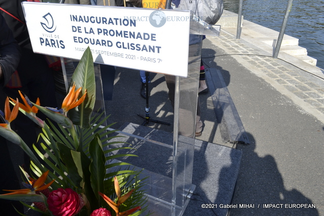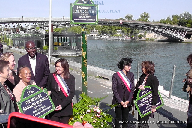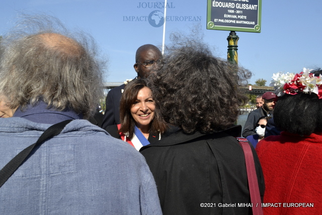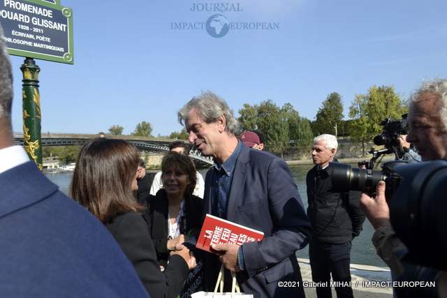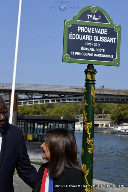 Face à la Seine et au public, Anne Hidalgo, a trouvé les mots pour décrire ce lieu magnifique. « C’est une évidence que nous retrouvions ici, sous le soleil, dans le vent, au bord du fleuve, pour commémorer, célébrer, la mémoire d’Édouard Glissant et donner à cette promenade sur la Seine, une promenade magnifique, on est sur l’un de plus beau paysage au monde, reconnu aussi tel quel par l’Unesco, de donner le nom d’Édouard Glissant à cette promenade. C’est plus qu’un symbole. C’est un message que nous voulons porter, promouvoir et inscrire dans l’histoire et dans la trame de Paris ». Anne Hidalgo voyait en Édouard Glissant, un « éclaireur », en rajoutent : « Ce que nous a appris Glissant, c’est que la langue français ne peut pas exister en écrasant les autres, mais en se nourrissant des autres ».
