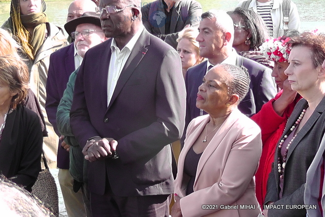 Christiane Taubira n’a pas fait de discours, mais a participé à la cérémonie en dévoilant la plaque au nom du poète. Elle a indiqué ensuite que le lieu choisi, révélait « une intention, une sensibilité, un respect pour Edouard Glissant ».