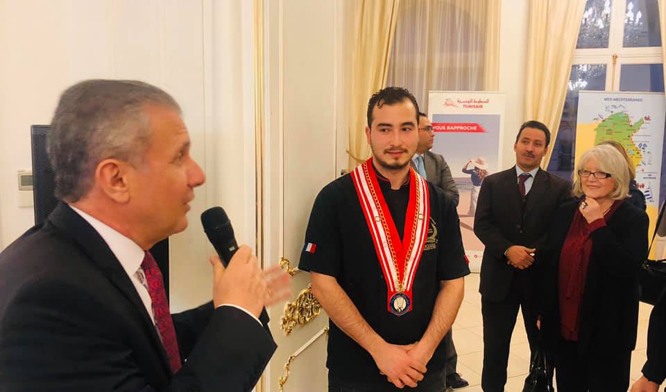 Son Excellence Monsieur Abdelaziz Rassaa, Ambassadeur de Tunisie à Paris, a reçu ce 13 décembre, dans les salons de l’Ambassade de Tunisie à Paris, chefs, médias spécialisés, blogueurs culinaires, responsables de la filière agro-alimentaire et des circuits de distribution, pour une dégustation d’huiles d’olive et de plats salés et sucrés à base d’huile d’olive, réception animée par la Chef tunisienne Malek Labidi Debbabi et le boulanger tunisien Mahmoud M’Seddi, lauréat du Grand Prix de la baguette de tradition parisienne 2018.