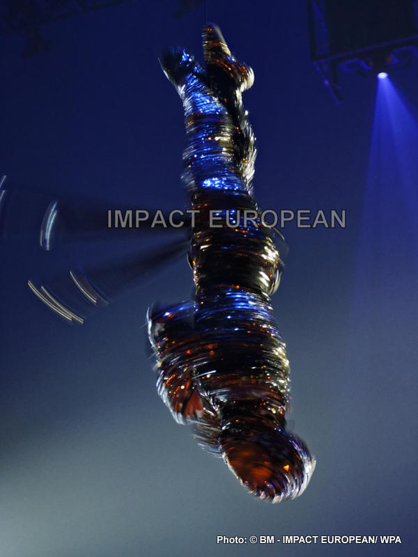 « TOTEM », spectacle créé et mis en scène par Robert Lepage, nous plonge dans un voyage au coeur de l’espèce humaine au travers de numéros typiquement circassiens comme la contorsion, le trapèze, les barres, les anneaux ou les cerceaux, monocycles ou encore contorsion et manipulation.. Ce spectacle sans animaux est réalisé par des artistes exceptionnels arborant de magnifiques costumes réalisés par Kim Barrett, se rapprochant du monde animal, aquatique (poissons et grenouilles du premier tableau) et des traditions de divers tribus amérindiennes (danseur de cerceaux) mais le plus impressionnant est celui de l’Homme de cristal que l’on retrouve au long du spectacle. Dès le début, on le voit descendre du « ciel » comme s’il provoquait la vie en animant la carapace de la tortue tout en l’illuminant grâce aux 4500 éléments de miroir et de cristaux qui recouvrent son costume.