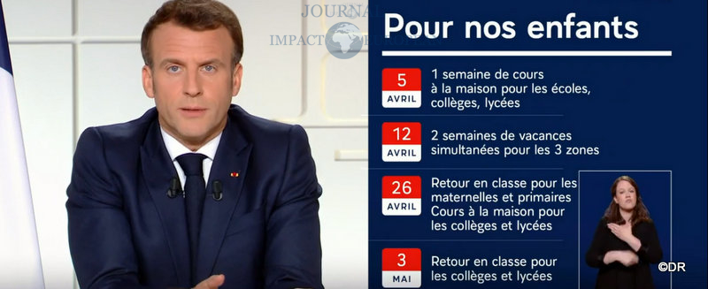 - Crèches, écoles, collèges et lycées vont être fermés trois semaines et le calendrier scolaire adapté. La rentrée aura lieu le 26 avril pour toutes les zones. Collégiens et lycéens pourront reprendre les cours en présentiel à partir du 3 mai.