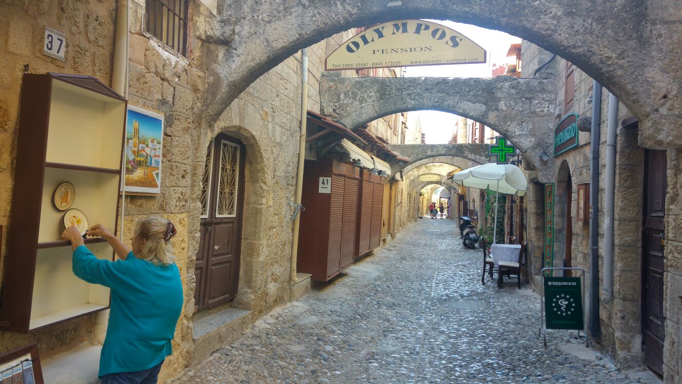 Une rue du centre, celle « des Chevaliers », est particulièrement remarquable. Datant de l’occupation de la ville par l’Ordre des Hospitaliers de St Jean de 1306 à 1522, elle est bordée « d’auberges » de style gothique qui accueillaient les Chevaliers protégeant la ville. Ils venaient de France, d’Auvergne, de Provence, de Castille, d’Aragon, d’Italie et d’Angleterre.