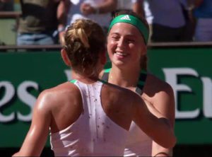 Face à la tête de série n°3, qui pouvait devenir numéro un mondiale en cas de victoire à Paris, Ostapenko a fait montre d’un incroyable sang froid. Menée 4-6, 0-3 et poussée au bord du gouffre par une Simona Halep toujours aussi solide, la Lettone a trouvé les ressources nécessaires pour renverser la vapeur. Et son tennis total – 54 fautes directes pour autant de coups gagnants – a fait le reste.