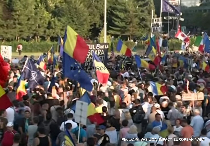 Quelque 80.000 Roumains, dont des milliers d’expatriés revenus spécialement dans leur pays et accompagnés pour certains de leurs enfants, s’étaient rassemblés place de la Victoire pour dénoncer la « corruption » du gouvernement.